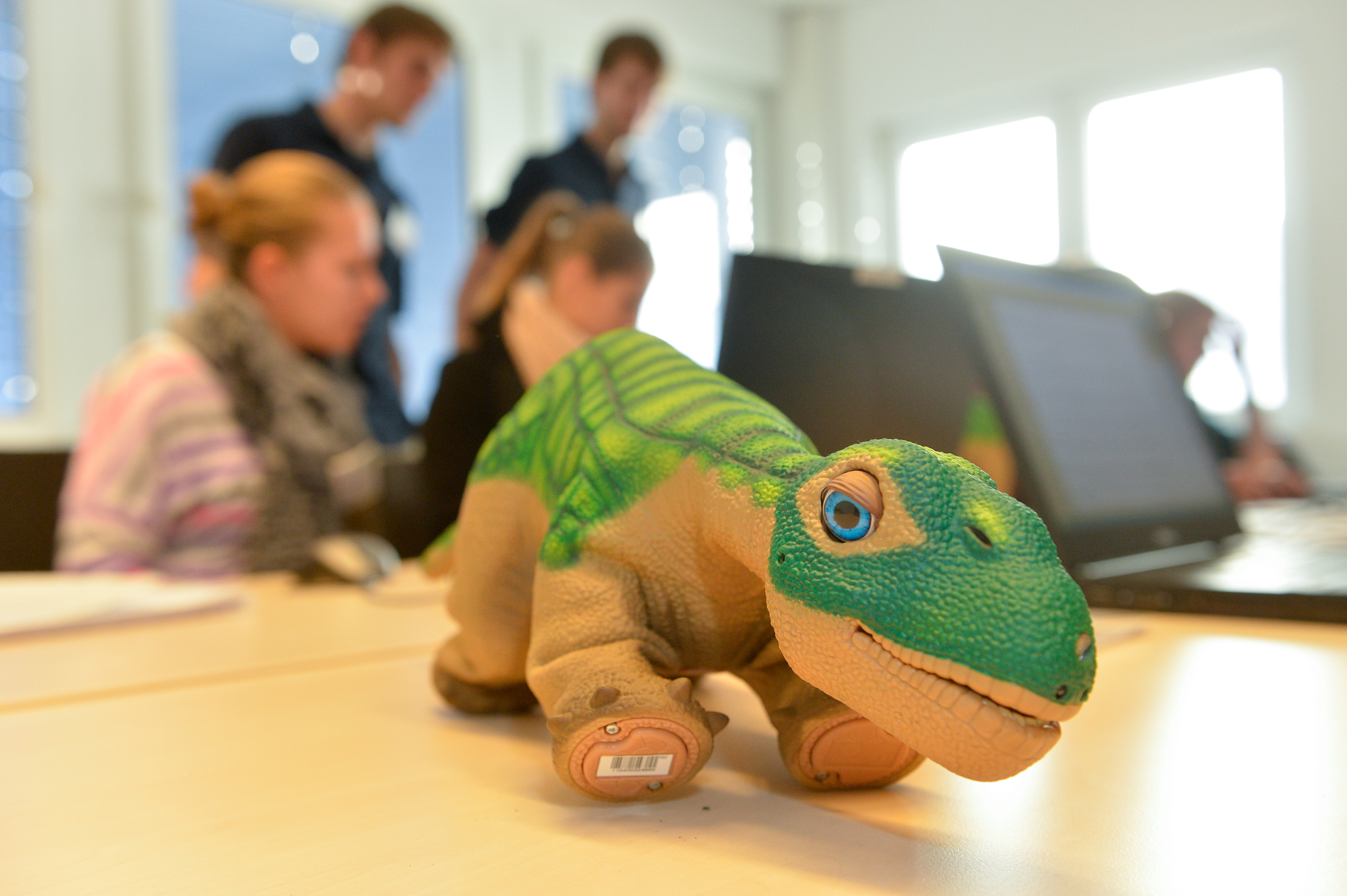 Der Roboterdinosaurier Pleo ist in allen vier Workshops dabei.Foto: Universität Bielefeld