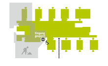 Bild: Die Karte zeigt den neuen Weg zum Haupteingang (interim) und die Parkplatzalternativen.Bildnummer: 97900