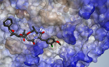 Die Grafik zeigt, wie Cryptophycin an ein Eiweißmolekül bindet, wie es auch in Krebszellen vorkommt, und so deren Wachstum verhindert.