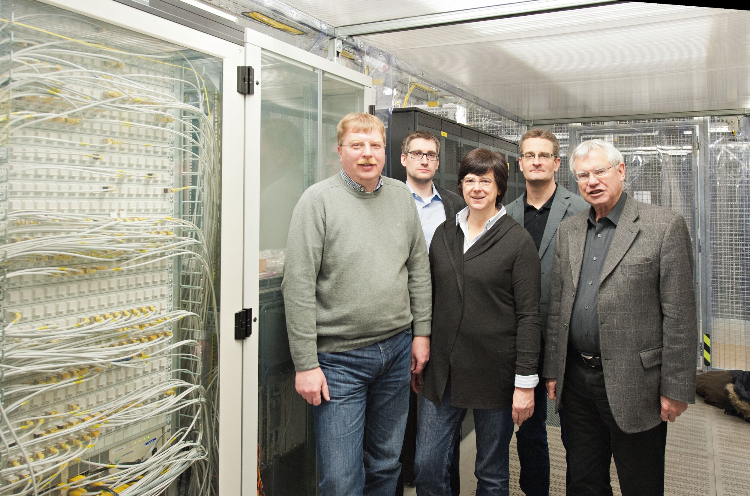 Sie unterstützen das neue Netzwerk „de.NBI“ von Bielefeld aus (von links): Prof. Dr. Andreas Tauch, Dr. Stefan Albaum, Dr. Tanja Dammann-Kalinowski, Dr. Alexander Sczyrba und Prof. Dr. Alfred Pühler. Foto: Universität Bielefeld