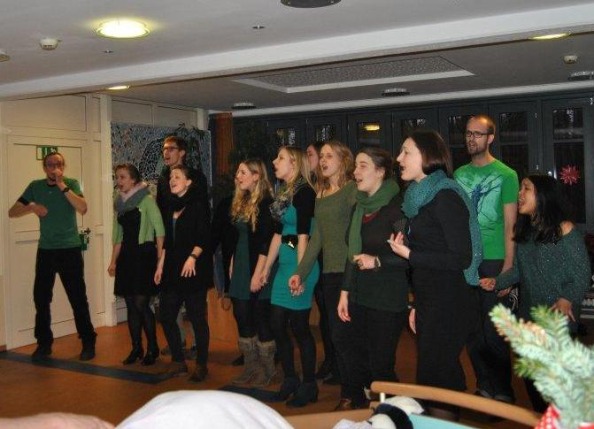 Studierende singen englischsprachige Weihnachtslieder.