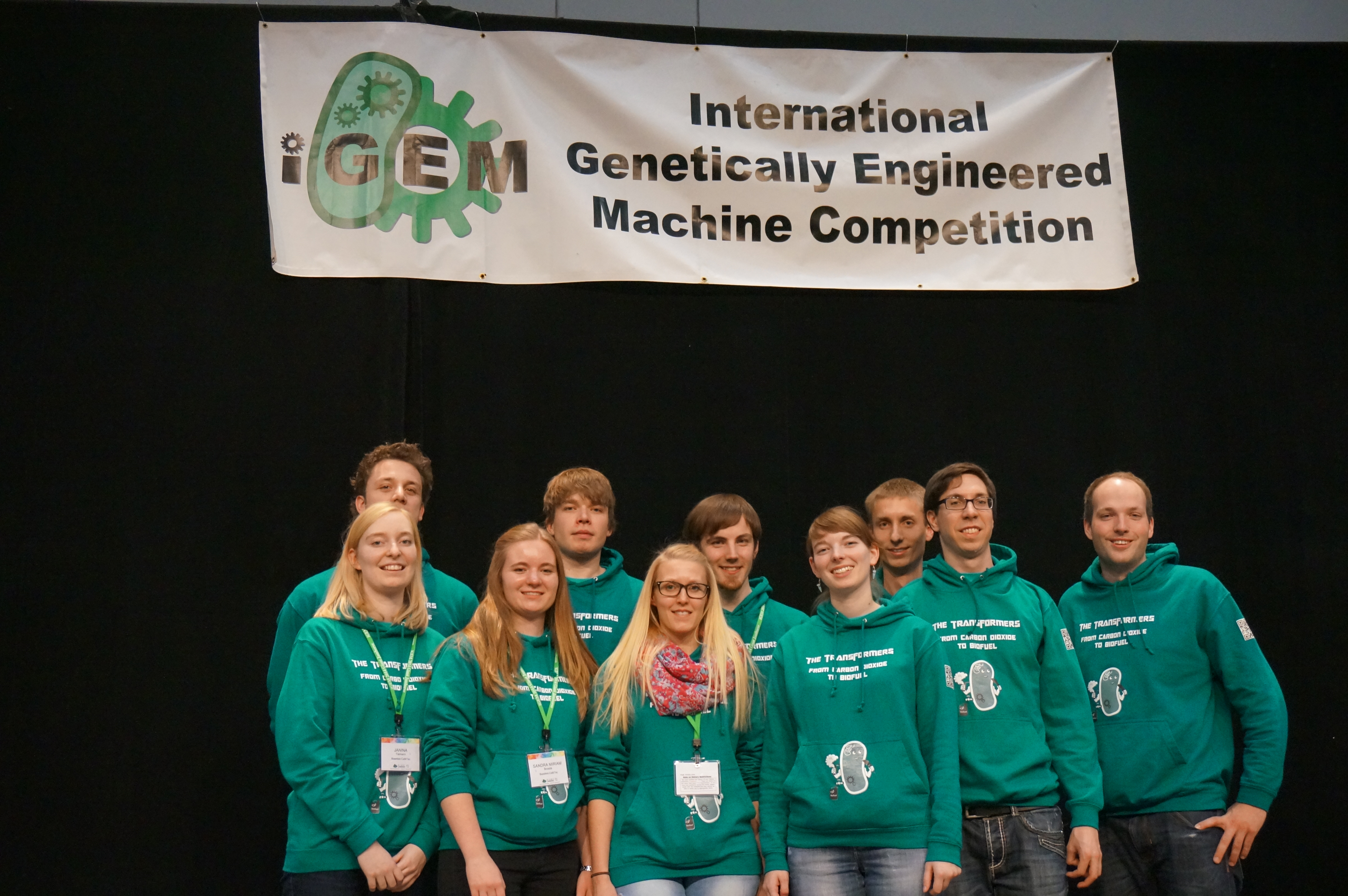 Das erfolgreiche Bielefelder Team: (v.l. hinten) David Wollborn, Tore Bleckwehl, Sebastian Blunk, Boas Pucker, Julian Droste; (v.l. vorn) Janina Tiemann, Sandra Brosda, Annika Fust, Birte Hollmann und Simon Riedl. Foto: iGEM Team Bielefeld