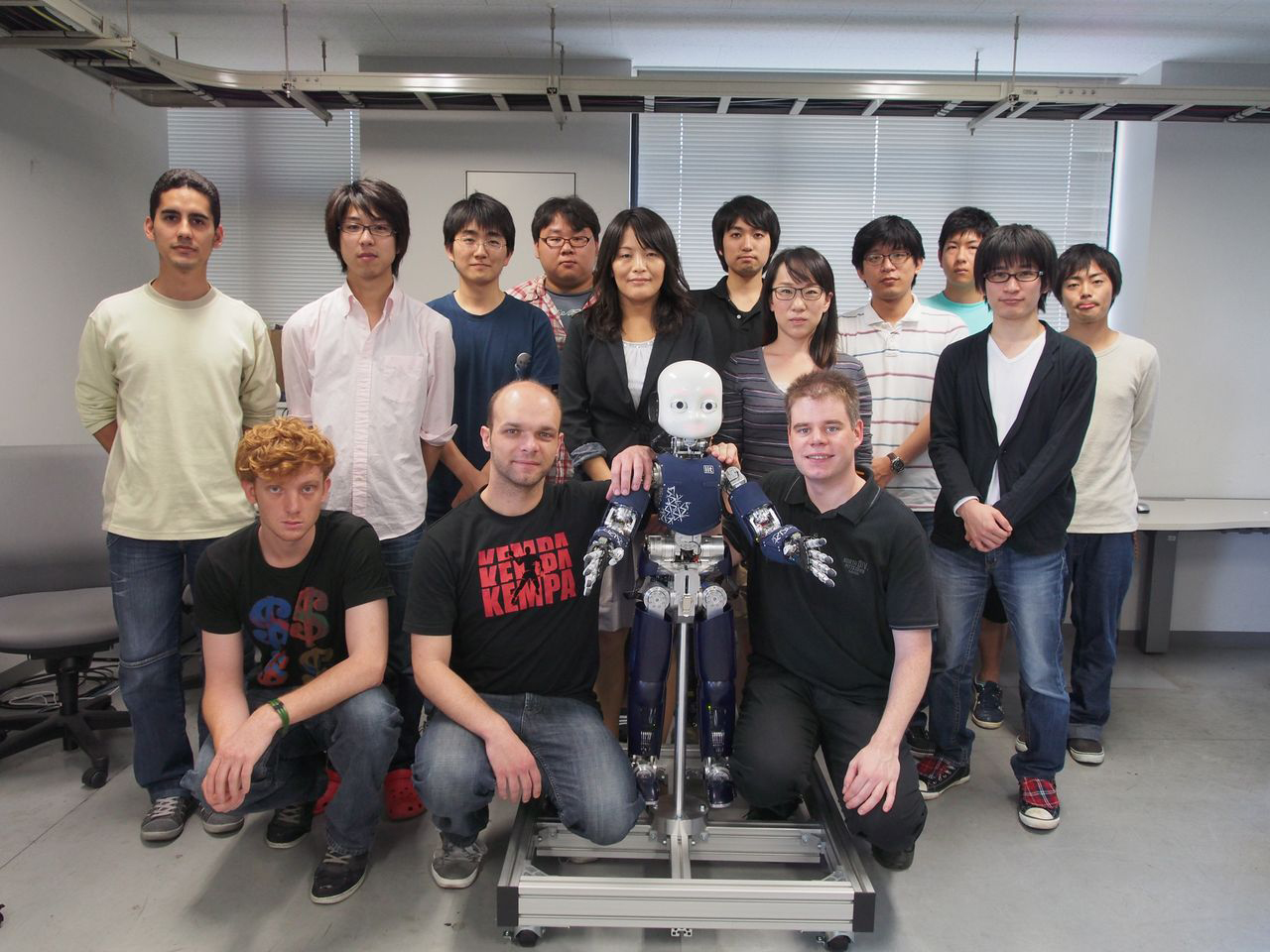 Von der Universität Bielefeld an die Universität Osaka: Matthias Rolf und Lars Schillingmann (vorn Mitte) forschen seit April 2013 in Japan. Foto: Universität Bielefeld