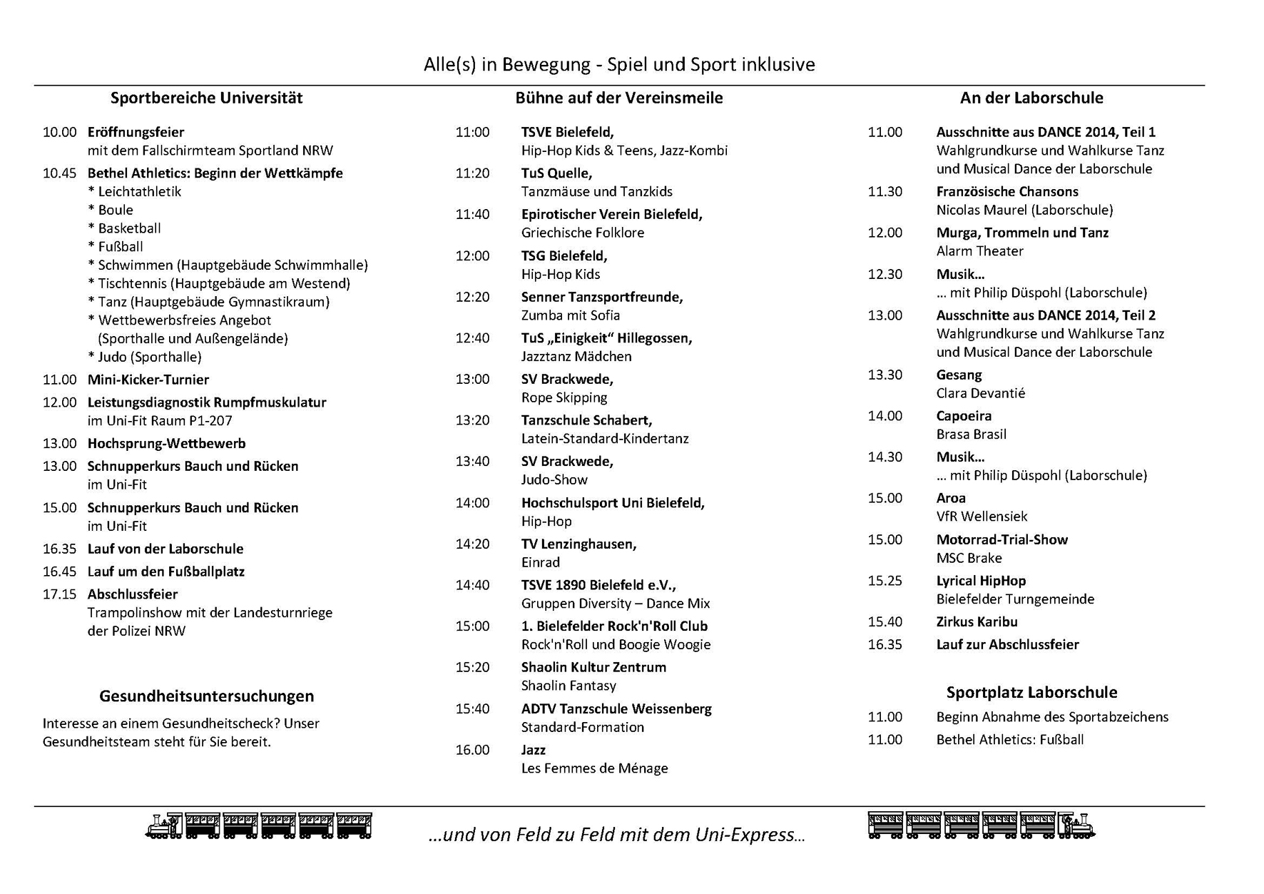 Ablaufplan der Bethel athletics 2014 (Stand: 26.08.2014)