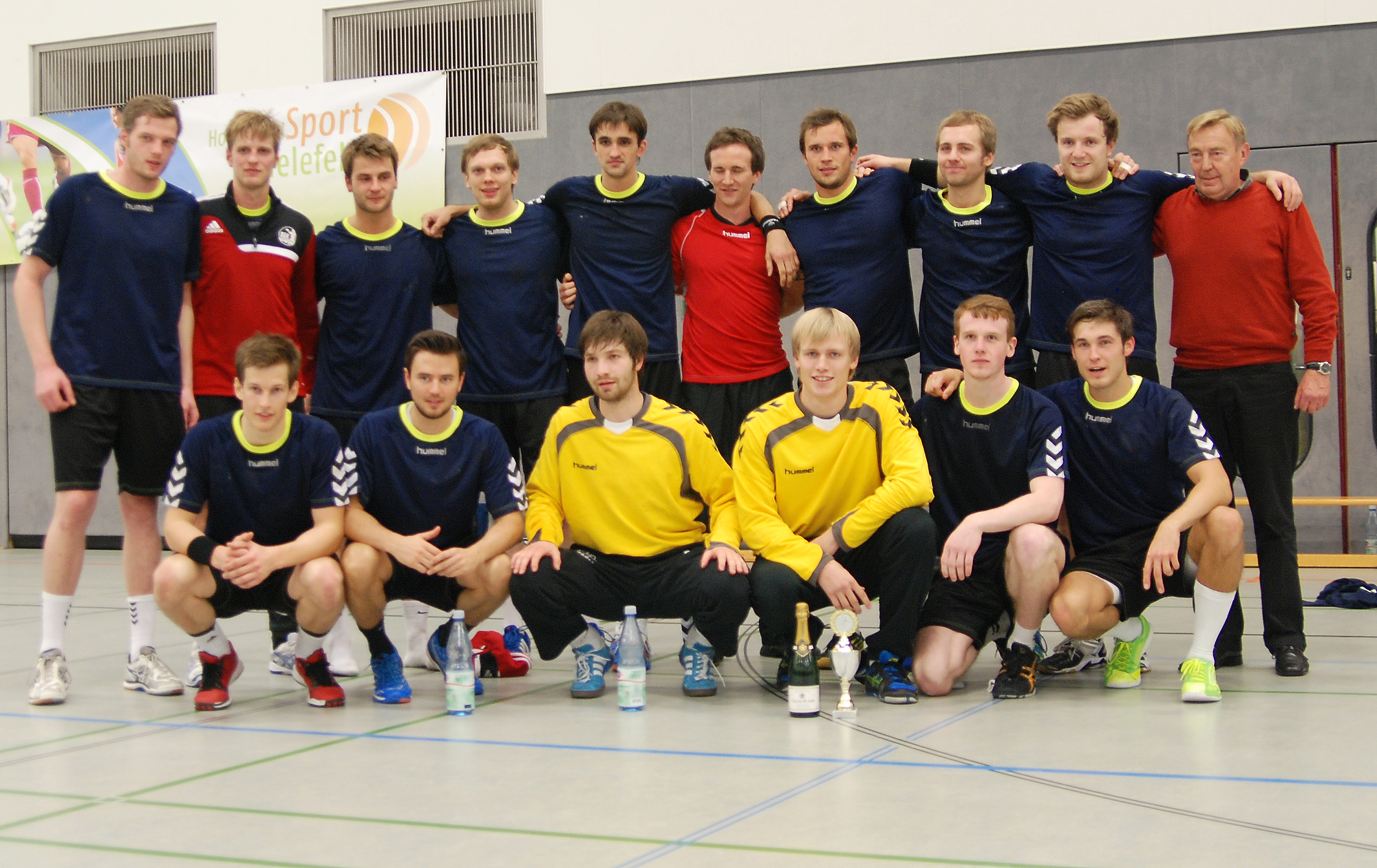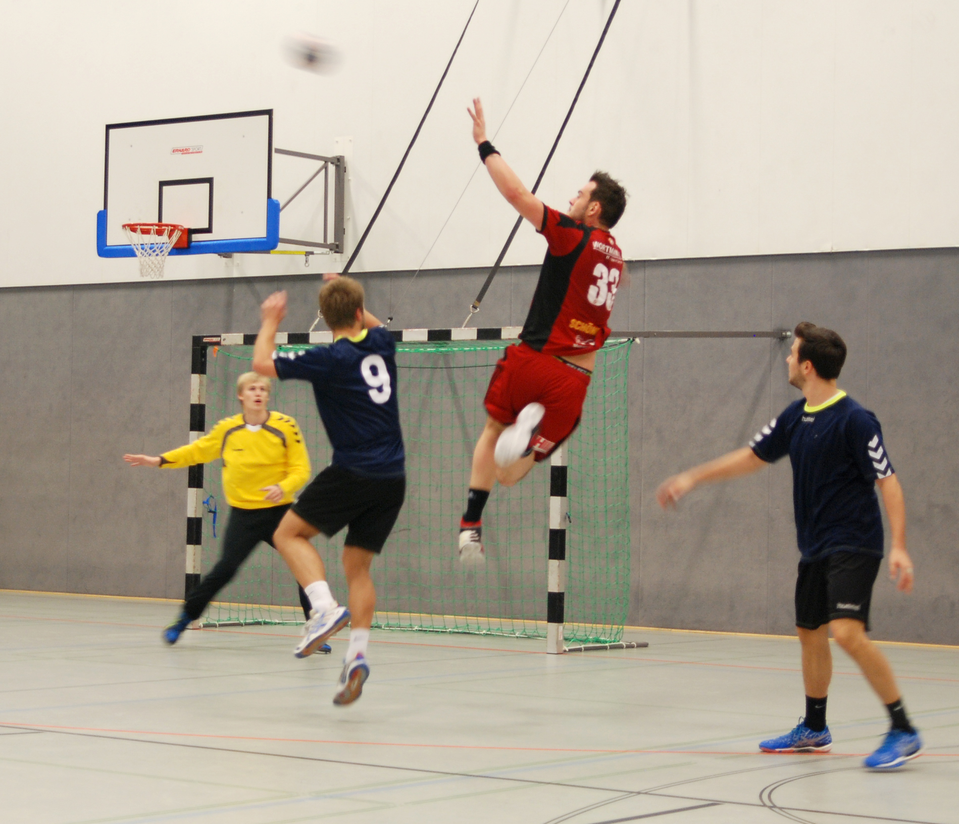Das Publikum konnte sich über viele Tore und einige handballerische Tricks freuen, wie hier einen „Kempa“ durch Jens Schöngarth TuS N-Lübbecke, der den Ball im Sprung fing und sogleich ein Tor erzielte. Foto: Universität Bielefeld.