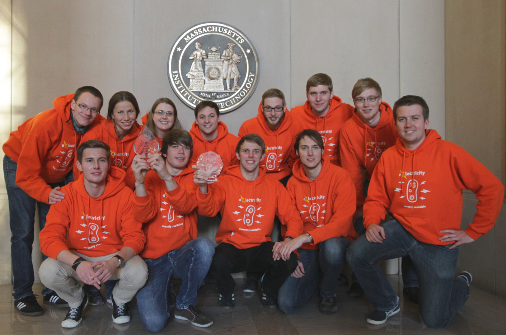 Das iGEM-Team der Universität Bielefeld freut sich am Massachusetts Institute of Technology in Boston über den zweiten Platz im iGEM-Wettbewerb: Thorben Meyer, Nadiya Romanova, Anna Korszańska, Manuel Schüler, Nils Christian Lübke, Matthias Ruwe, Tom Tubbesing (hinten v.l.); Lukas Rositzka, Tore Bleckwehl, Sebastian Grenz, Fabian Thomas, Timo Wolf (vorne v.l.). Foto: iGEM-Team Bielefeld