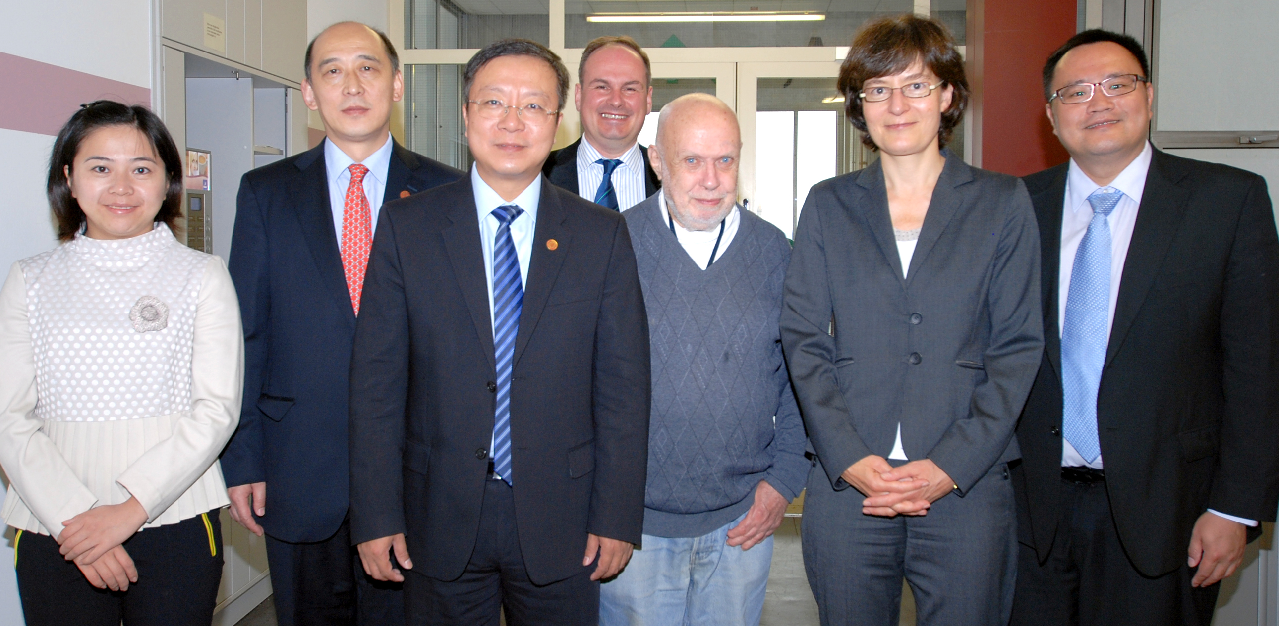 Delegation aus Shanghai zu Gast (v.l.): Zhang Huihong, Prof. Ding Shuzhe, Prof. Ren Youqun, Dr. Thomas Lüttenberg, Prof. Dr. Andreas Dress, Prof. Dr. Martina Kessel und Wang Subin.