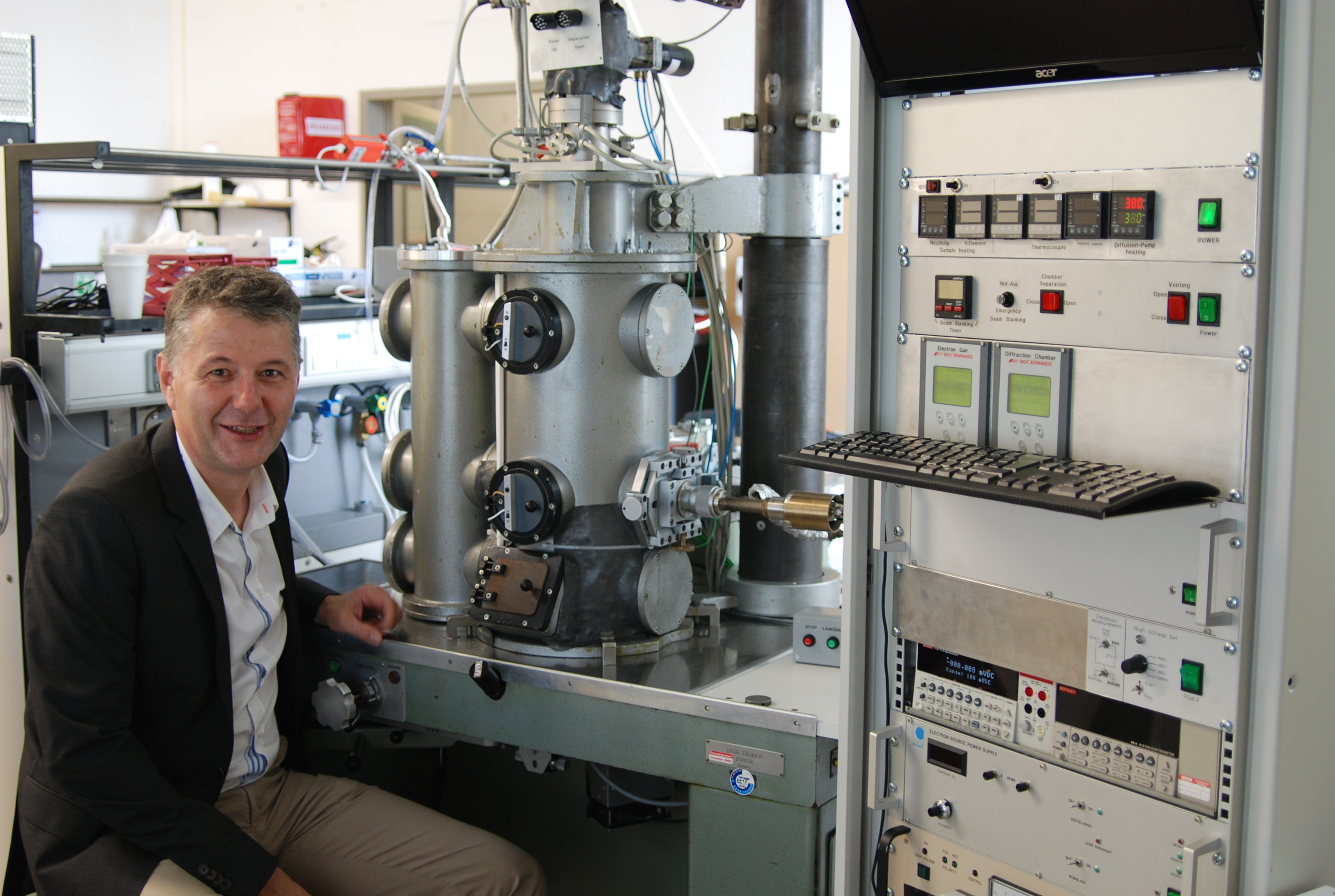 Prof. Dr. Norbert Mitzel mit dem modernisierten Gas-Elektronendiffraktometer.