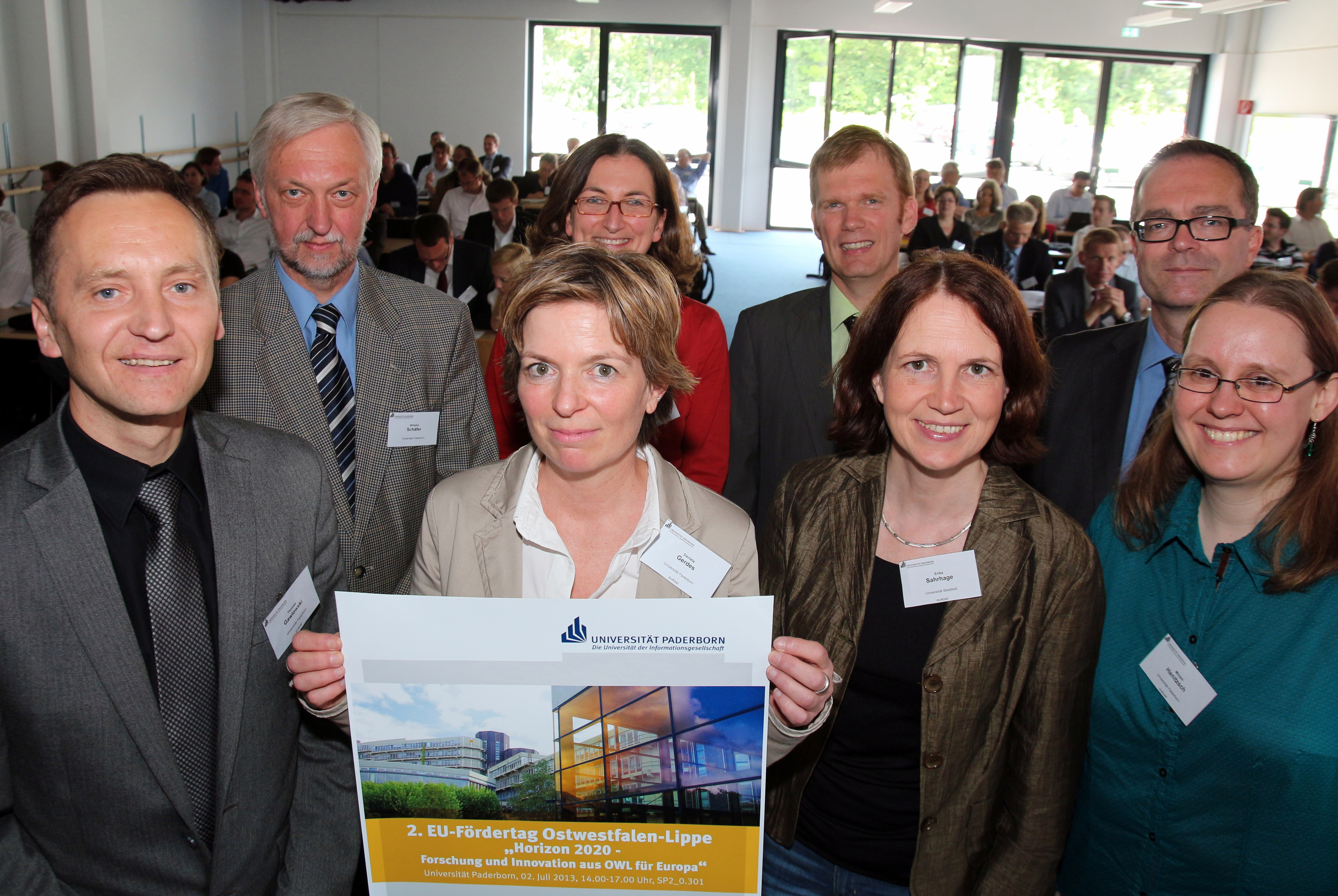Bild: Informierten über Fördermöglichkeiten für Hochschulen und Unternehmen in OWL: Hintere Reihe (v. l.): Prof. Dr. Wilhelm Schäfer (Vizepräsident Universität Paderborn)Bildnummer: 88840