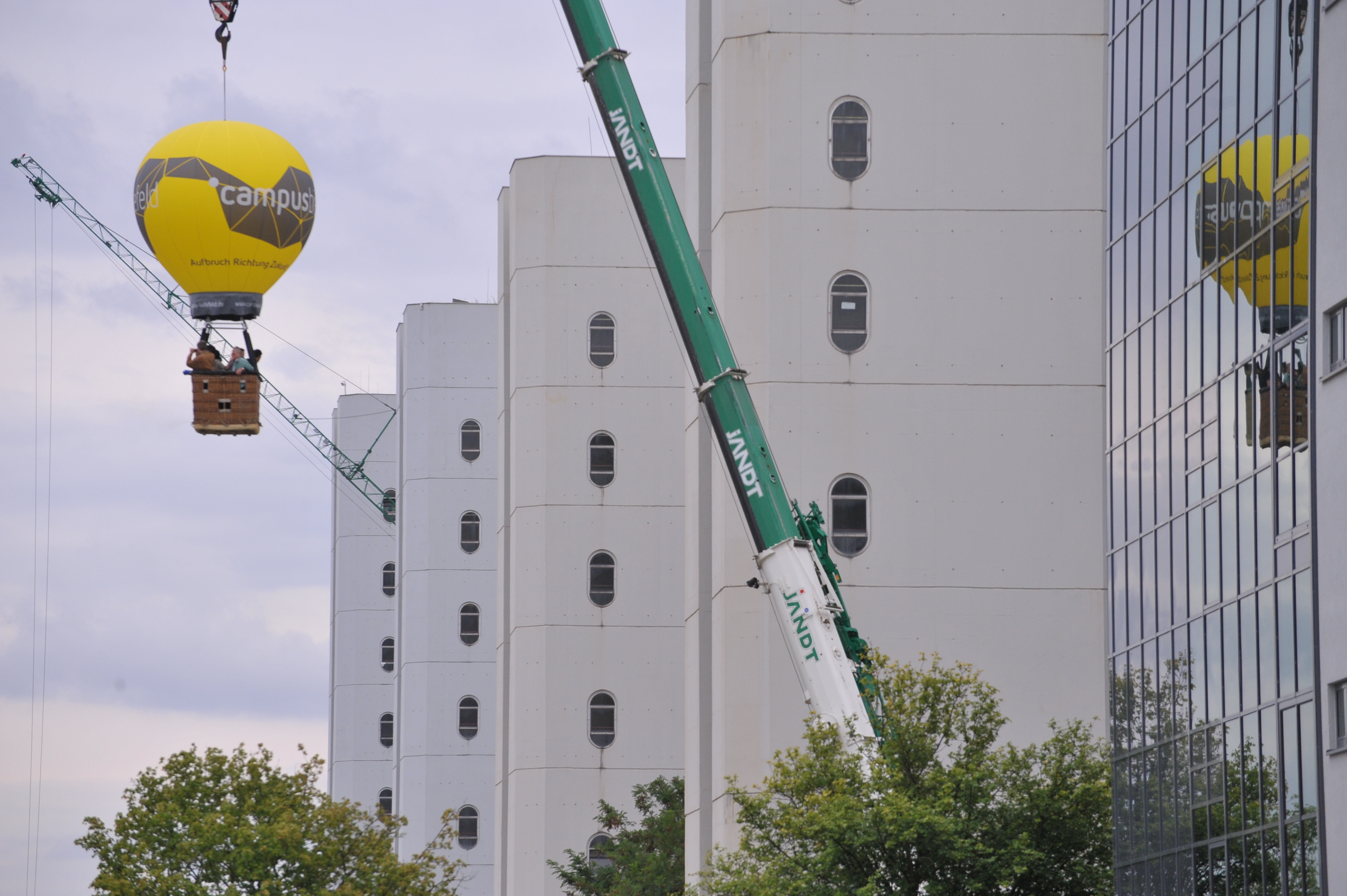 Bild: Die Fahrt mit dem Kranballon ermöglicht einen Blick über den neuen Campus Bielefeld.