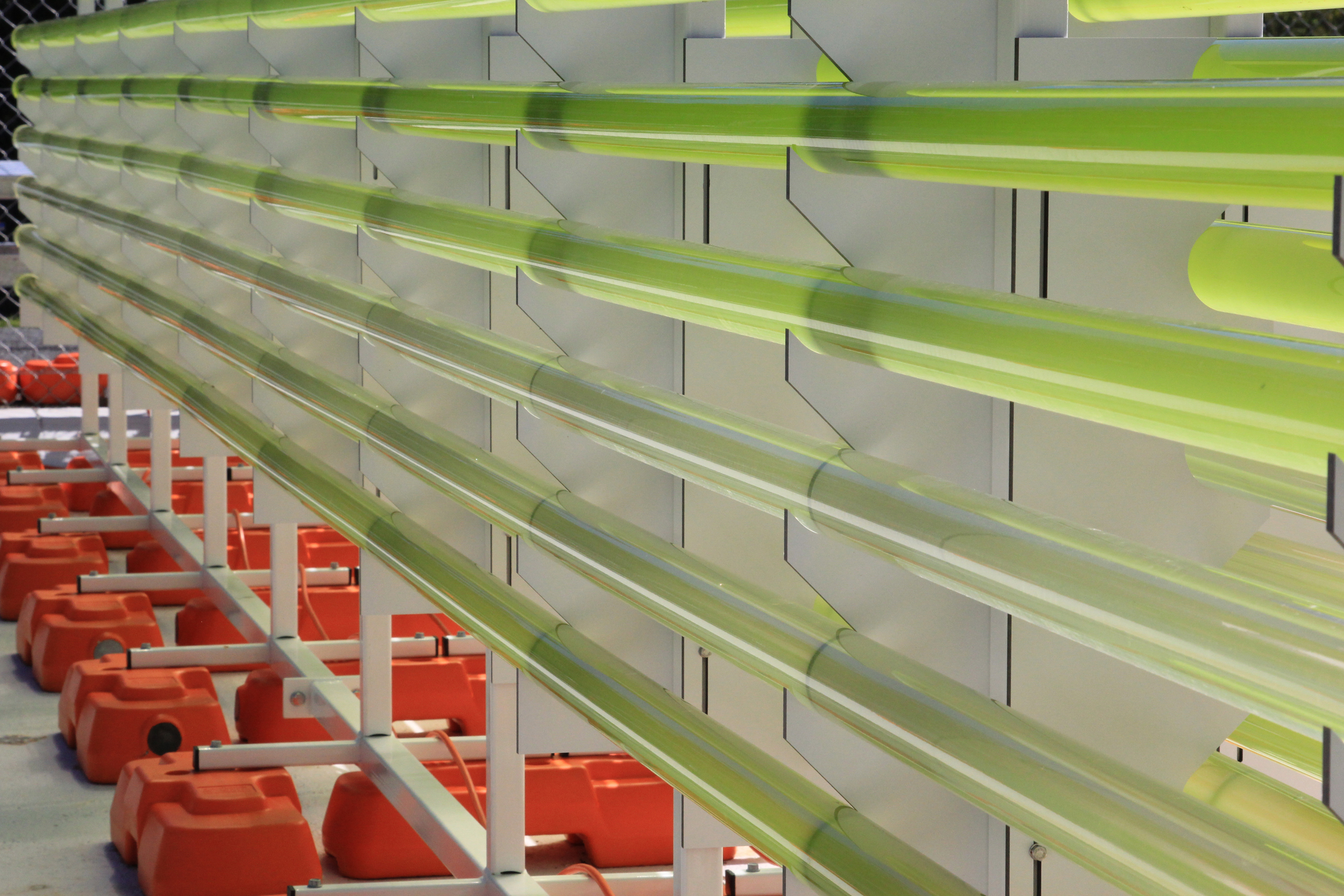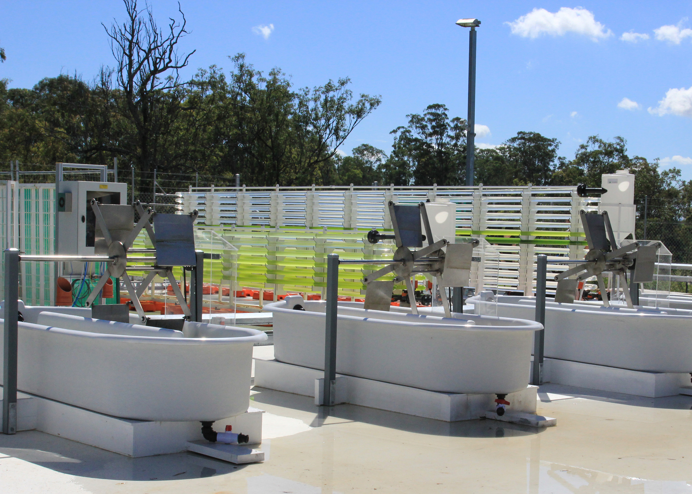 Die Mikroalgen werden zu Testzwecken sowohl in einem geschlossenen Röhrensystem als auch in offenen Wannen gezüchtet. Foto: University of Queensland