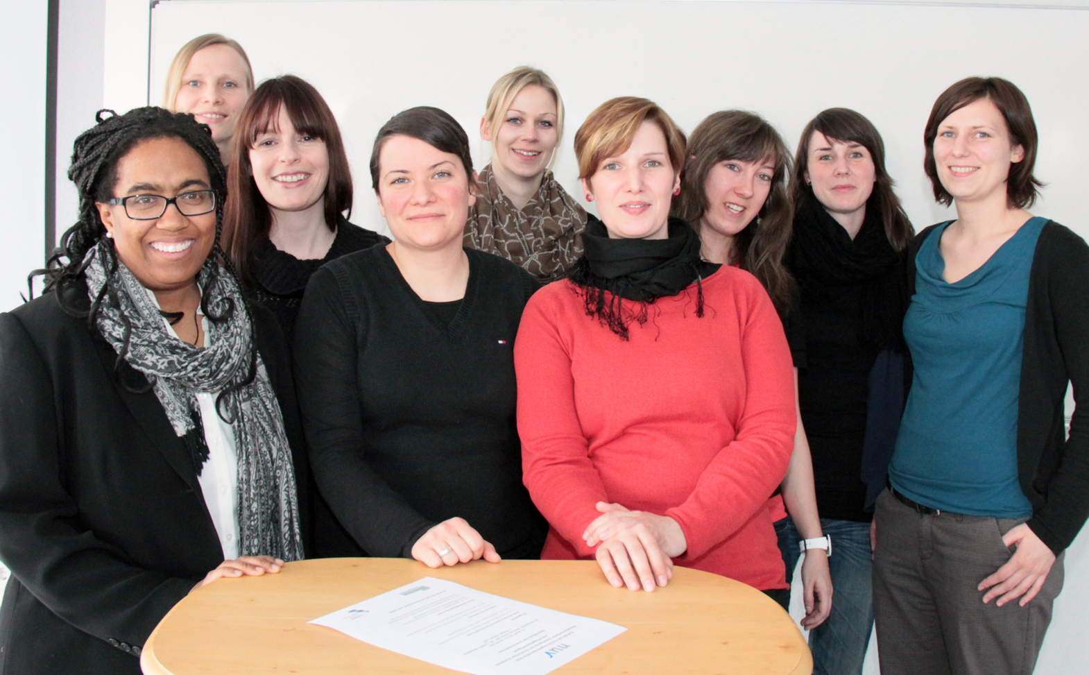 Doktorandinnen im NuV (v.l.): La Kenya Houston, Cornelia Geukes, Sabine Roebers, Hürrem Tezcan-Güntekin, Dominique Vogt, Britta Kelch, Yvonne Queißer-Schlade, Janina Kutzner und Judith Greiwe. Foto: FH Bielefeld