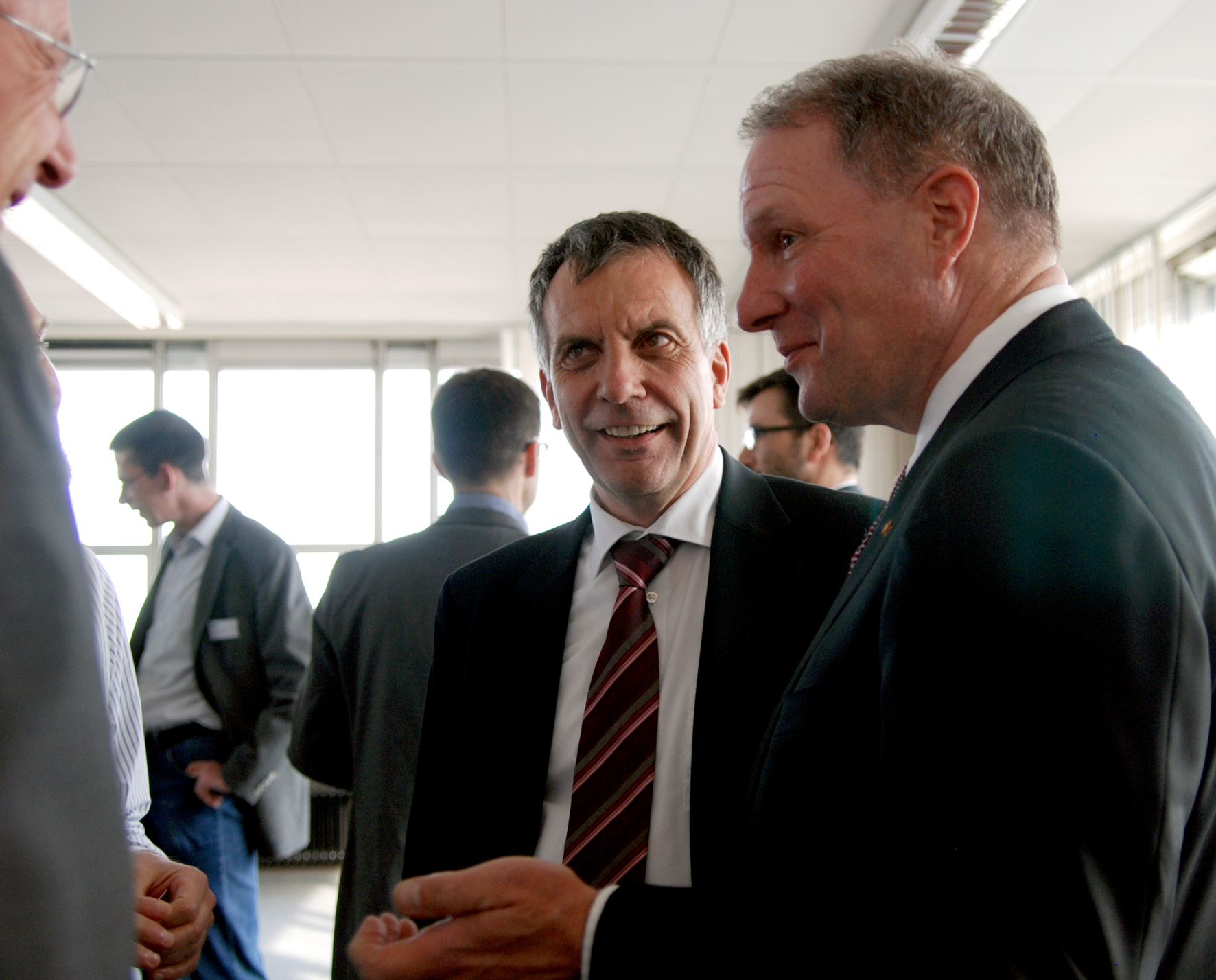 Rektor Prof. Dr.-Ing. Gerhard Sagerer (Mitte) im Gespräch mit Dr. Carl Amrhein (rechts). Foto: Universität Bielefeld
