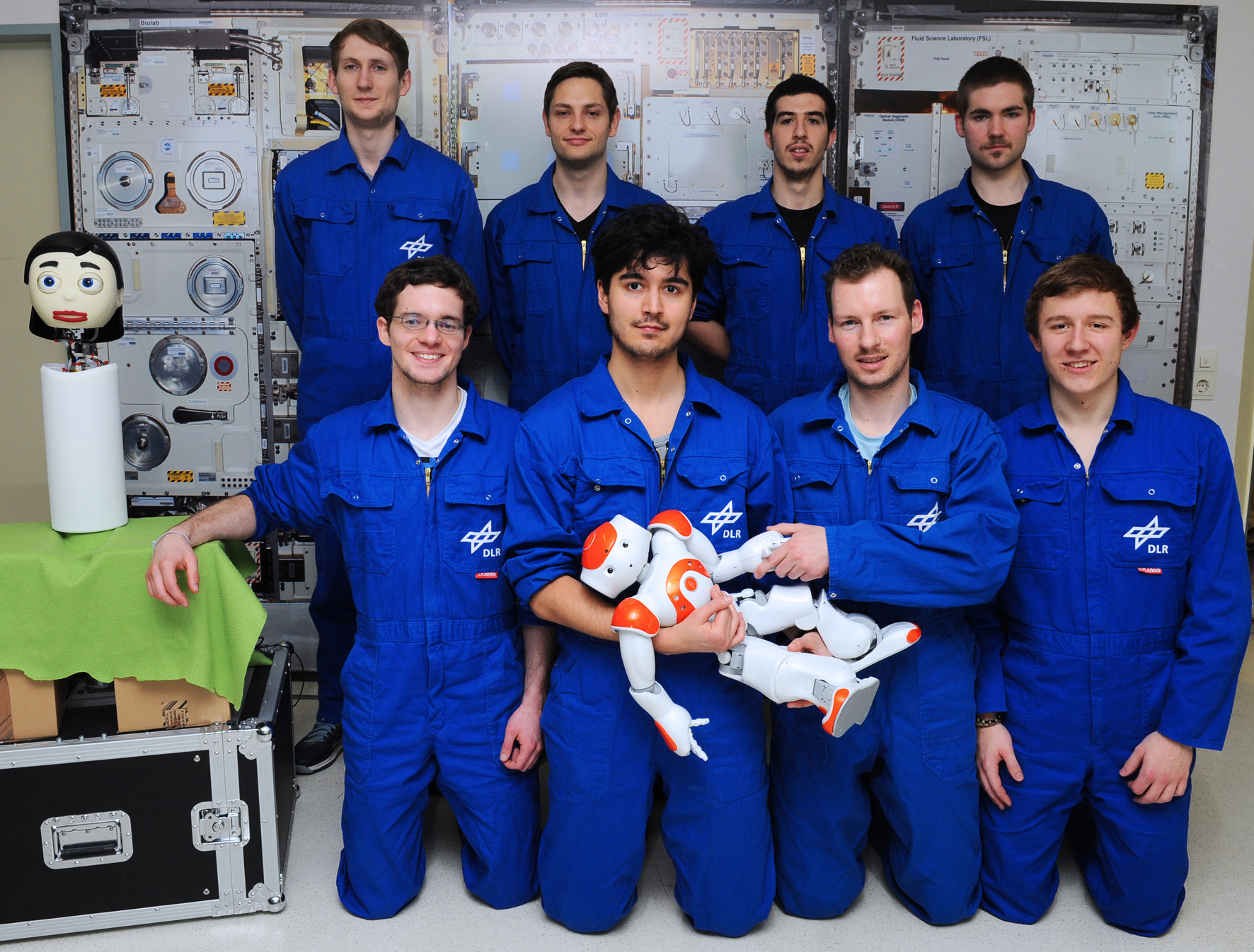 Die acht Testpersonen wohnten 18 Tage lang in einem abgeschotteten Bereich. Die Roboter Flobi (links) und Nao (rechts) hielten sie körperlich und geistig auf Trab. Foto: Deutsches Zentrum für Luft- und Raumfahrt