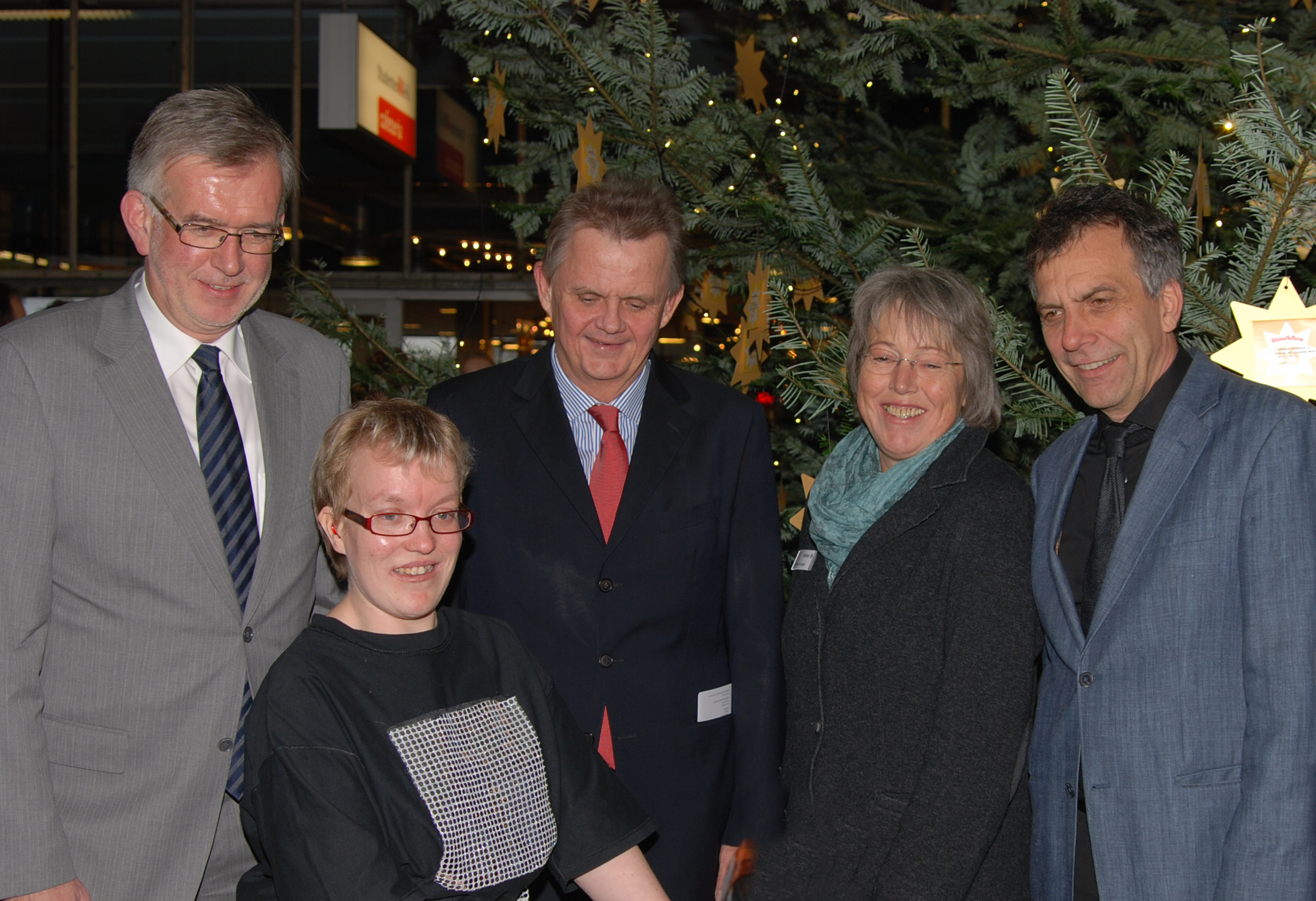 Gaben das Auftaktsignal für den Wunschbaum: Friedhelm Rieke, Chantal Schmidt, Dr. Günther Wienberg, Evelin Krüger und Rektor Gerhard Sagerer.
