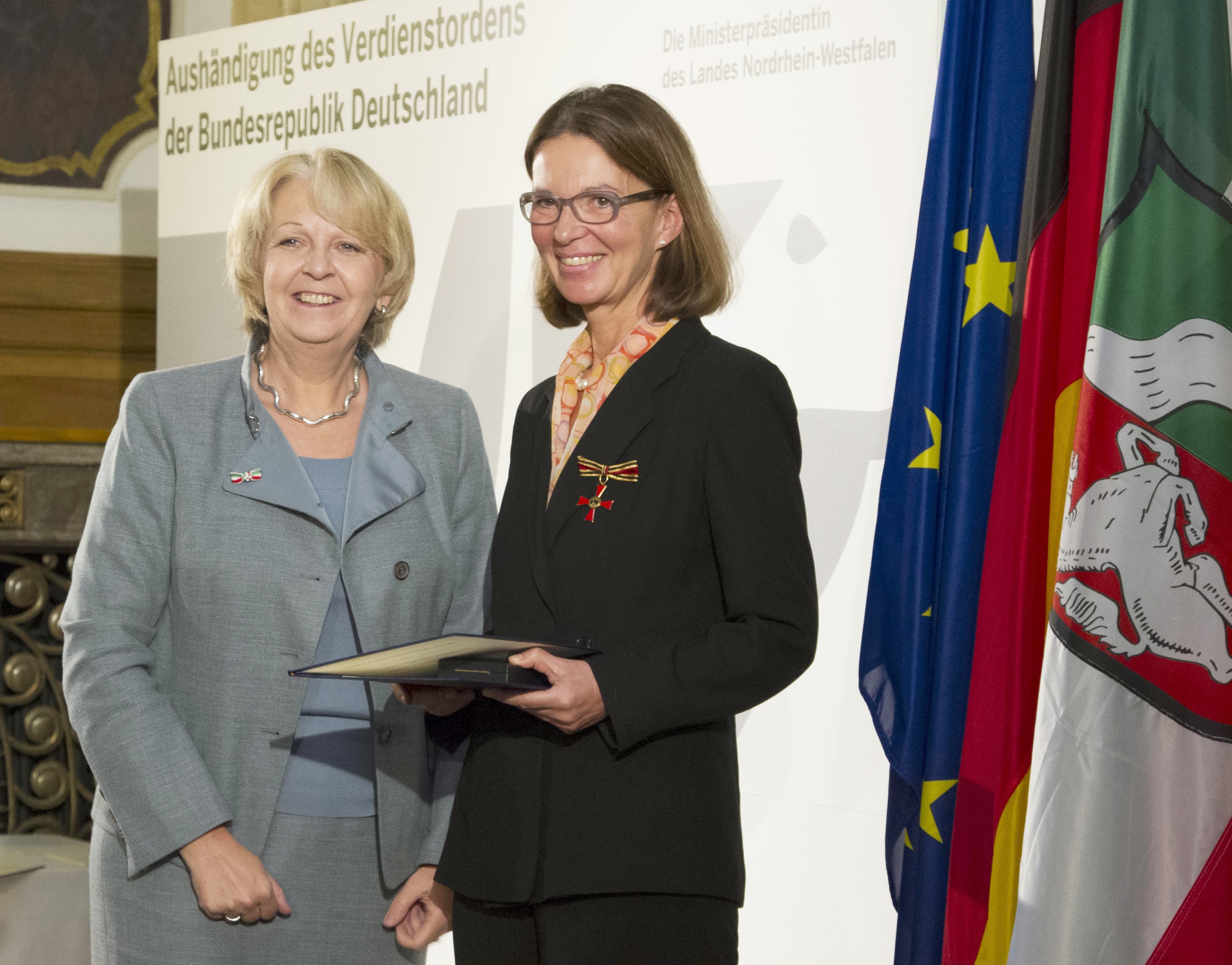 Ministerpräsidentin Hannelore Kraft ehrte Professorin Dr. Gisela Lück mit dem Bundesverdienstkreuz. Foto: modusphoto