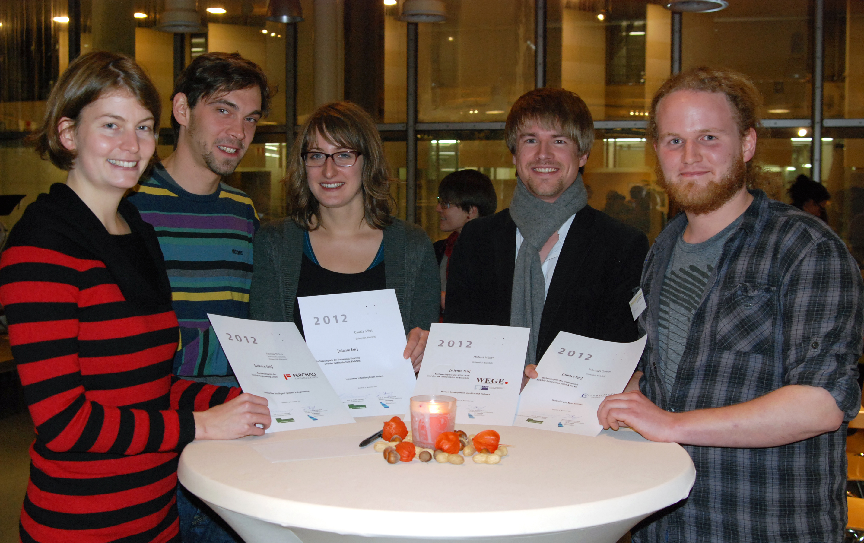 Preisträger der Science Fair (v.l.): Annika Peters, Hergen Köhler, Claudia Göbel, Michael Müller und Johannes Greiner.