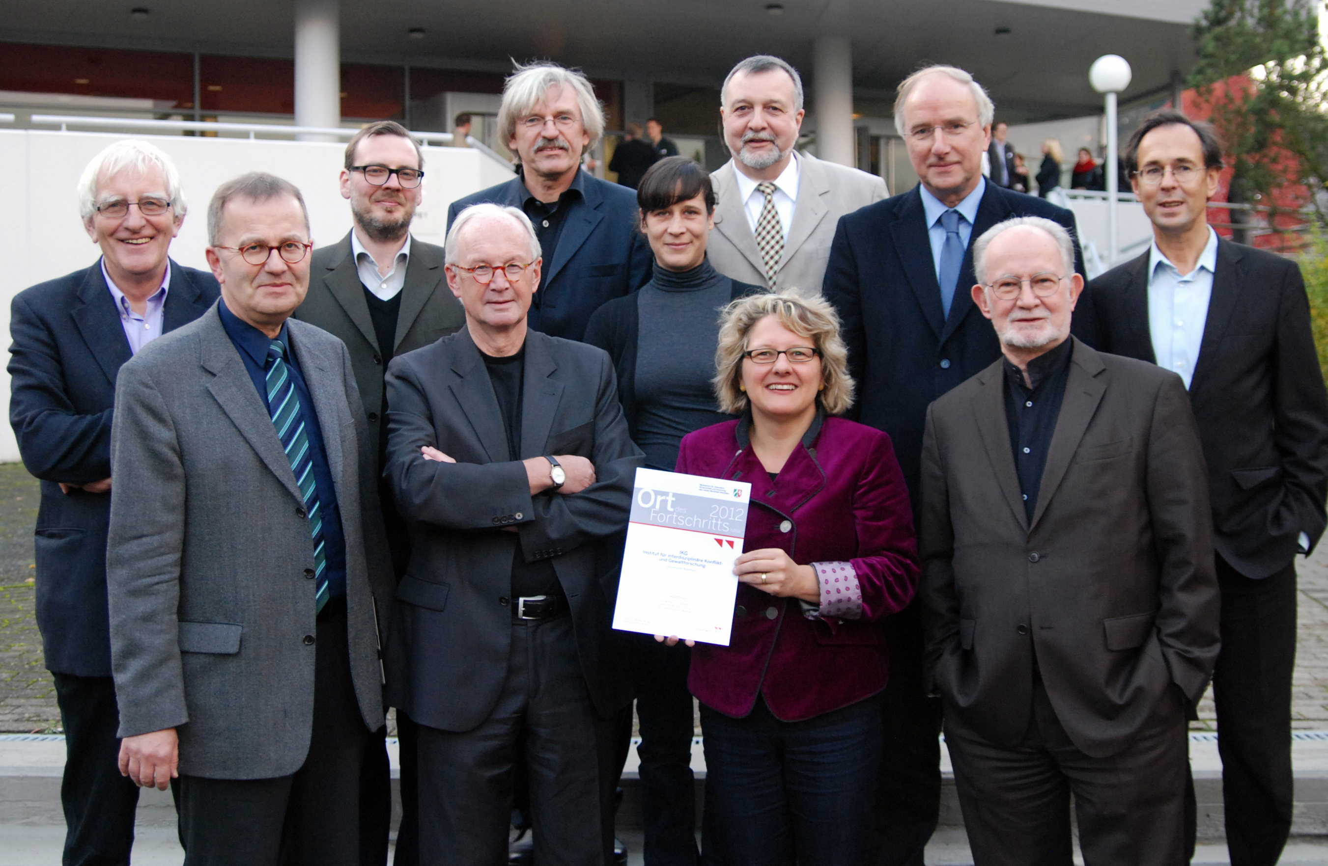 Das IKG wird Ort des Fortschritts (v.l.): Prof. Dr. Heinz-Gerhard Haupt (Universität Bielefeld) Prof. Dr. Martin Egelhaaf, (Prorektor für Forschung der Universität Bielefeld), Denis van de Wetering (wissenschaftlicher Mitarbeiter IKG), Prof. Dr. Wilhelm Heitmeyer (Leiter des IKG, Universität Bielefeld), Prof. Dr. Jost Reinecke(Universität Bielefeld, Julia Marth (wissenschaftliche Mitarbeiterin IKG), Ministerin Svenja Schulze, Prof. Dr. Gerd Bohner (Universität Bielefeld), Dr. Wilhelm Krull (Generalsekretär der VolkswagenStiftung), Prof. Dr. Friedhelm Neidhardt (ehemaliger Präsident des Wissenschaftszentrums für Sozialforschung in Berlin) und Prof. Dr. Andreas Zick (Universität Bielefeld).