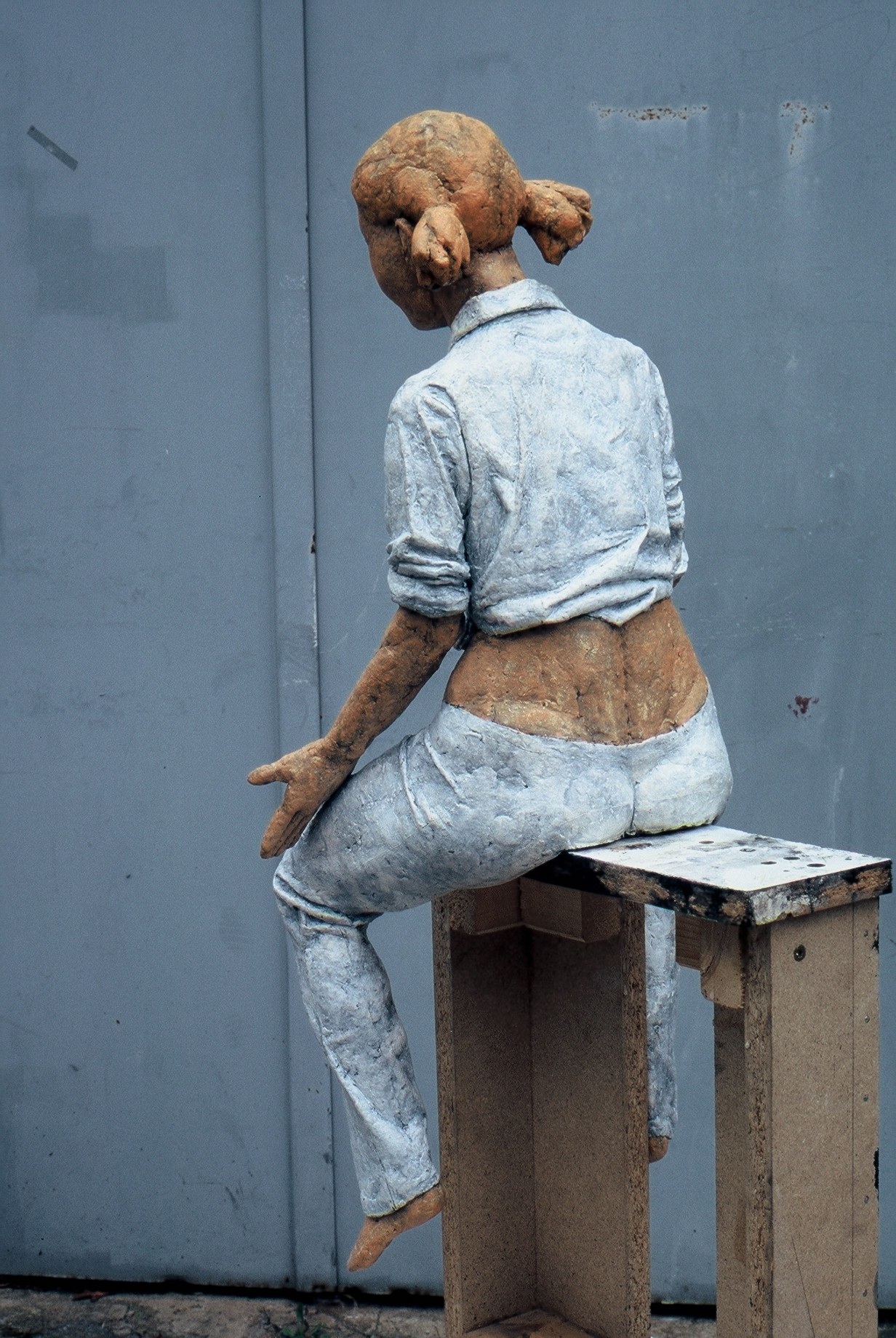 Foto: Christian Stiesch - „Pause“ (Sitzende mit Colaflasche) 2008, Terrakotta, farbig gefasst.