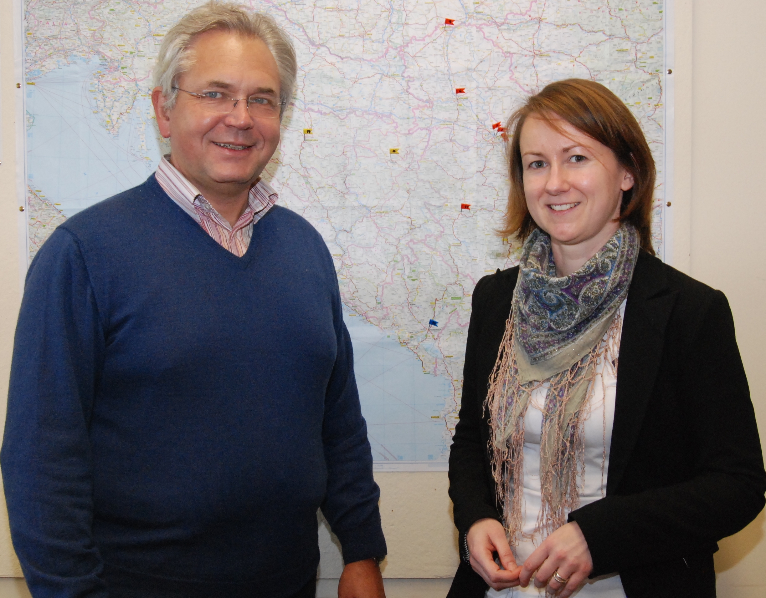 Bild: Professor Dr. Martin Diewald und Jana Nöller von der Bielefelder Fakultät für Soziologie sind verantwortlich für das neue Projekt Congrad. Die Fähnchen auf der Landkarte markieren die Orte der teilnehmenden Hochschulen auf dem westlichen Balkan.Bildnummer: 76458