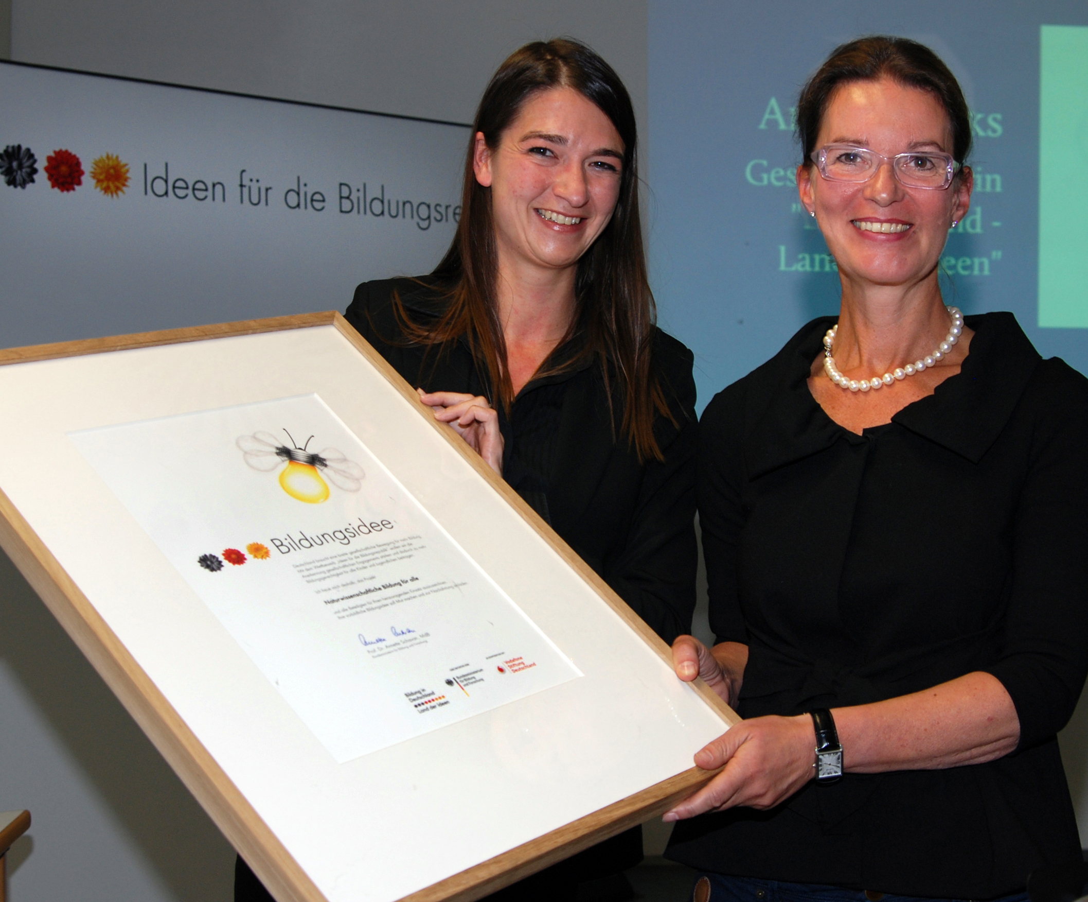 Ariane Derks, Geschäftsführerin „Deutschland – Land der Ideen" übergab die Auszeichnung an Prof. Dr. Gisela Lück