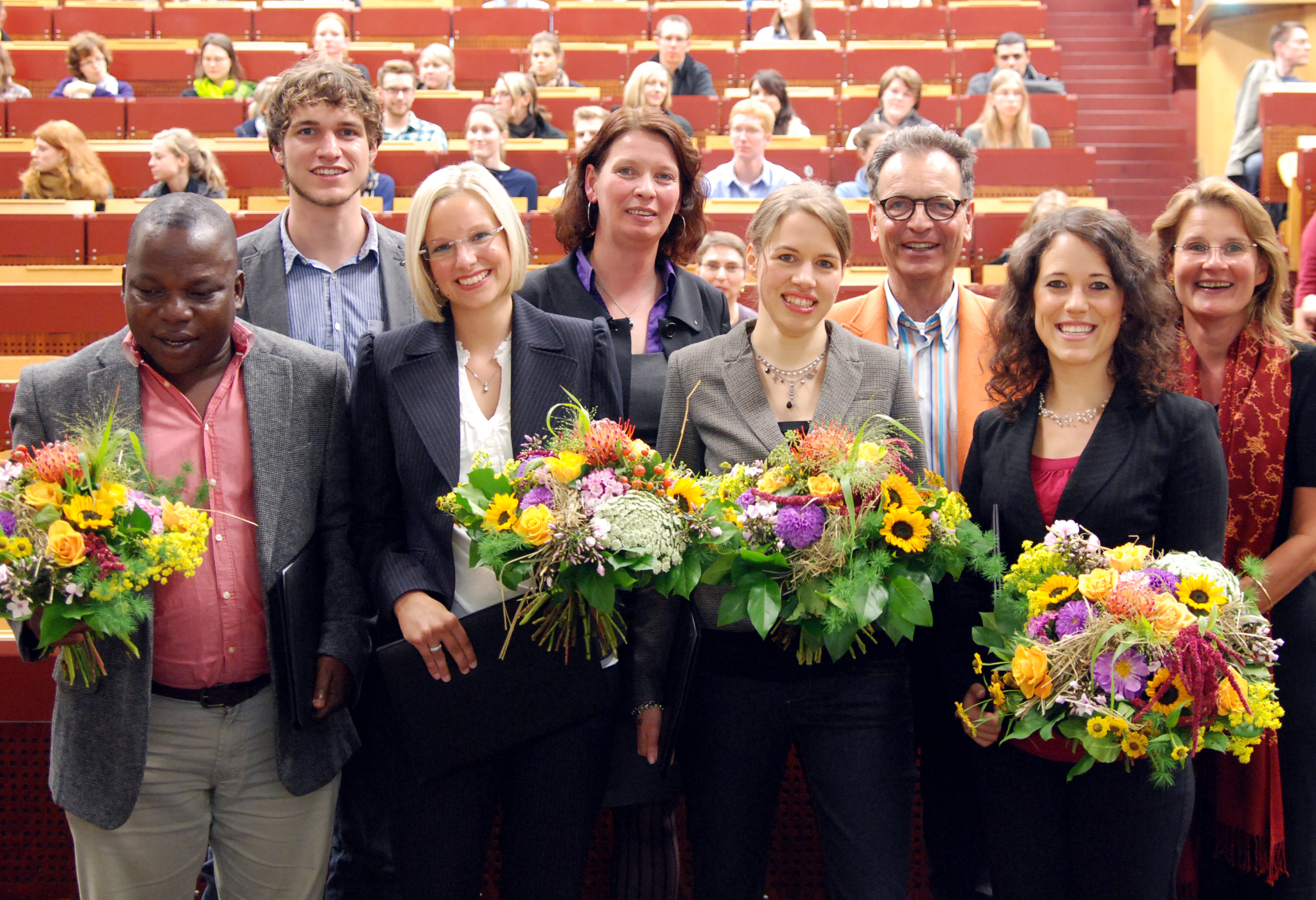 Julius Fobil, Benjamin Kuntz, Miriam Schmuhl, Dr. Martina Niemeyer, Judith Born, Prof. Dr. Alexander Krämer, Anett Bruckner und Dekanin Prof. Dr. Claudia Hornberg (v.l.)