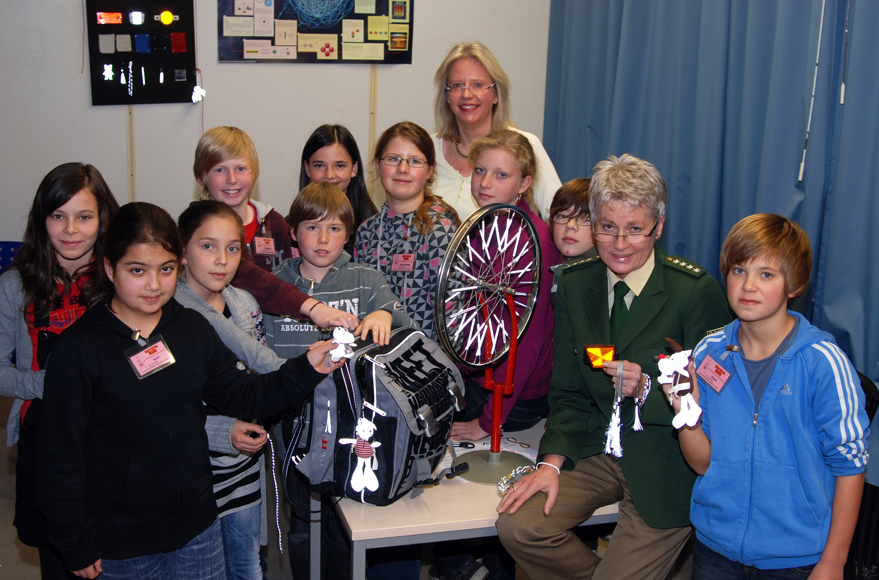 Retroreflexion im teutolab Physik: Malin, Aylin, Hannah, Frederik, Kevin, Laura, Anne, Dr. Katja Tönsing, Lea, Lorin, Ellen Haase und Yann.