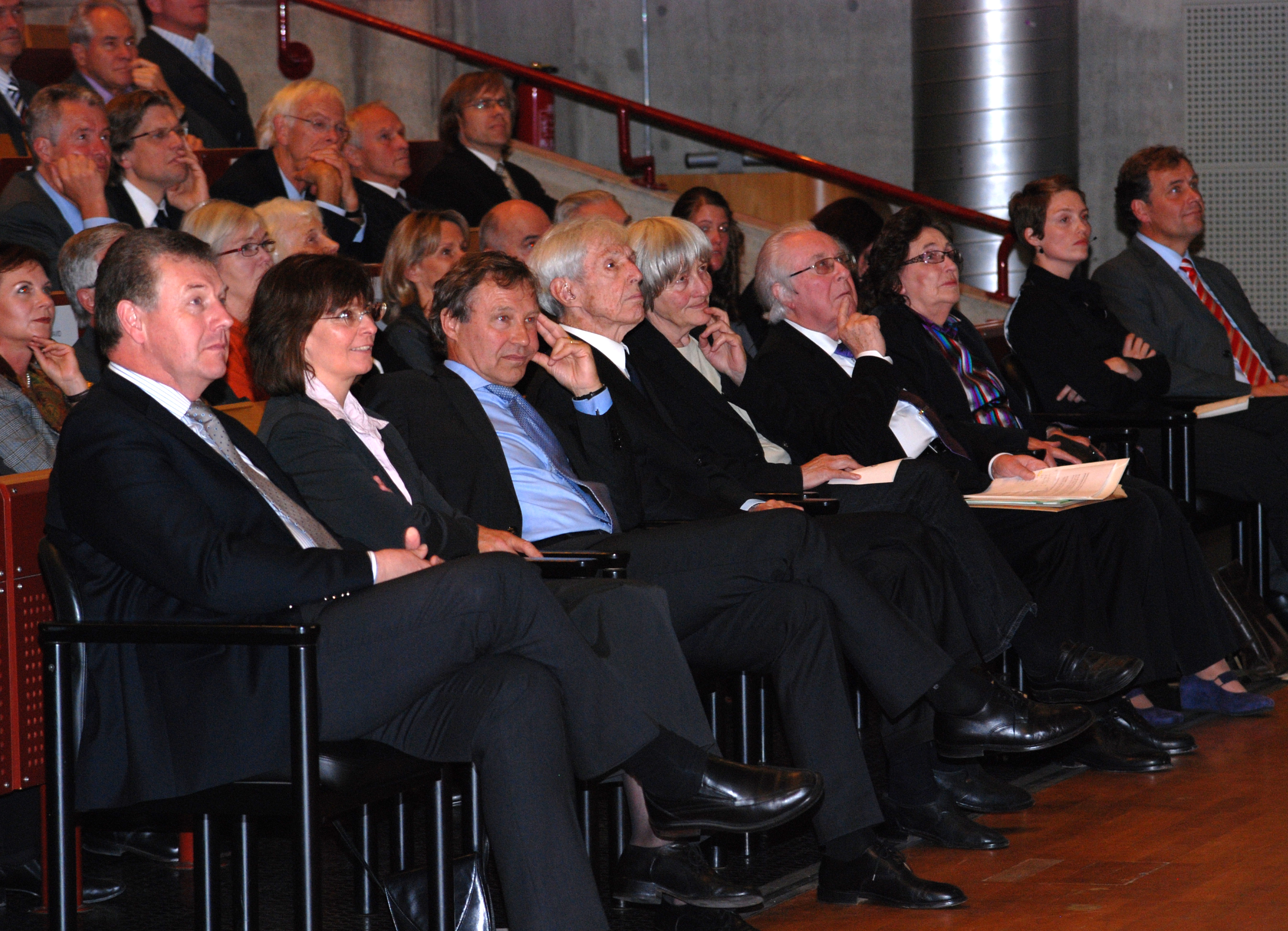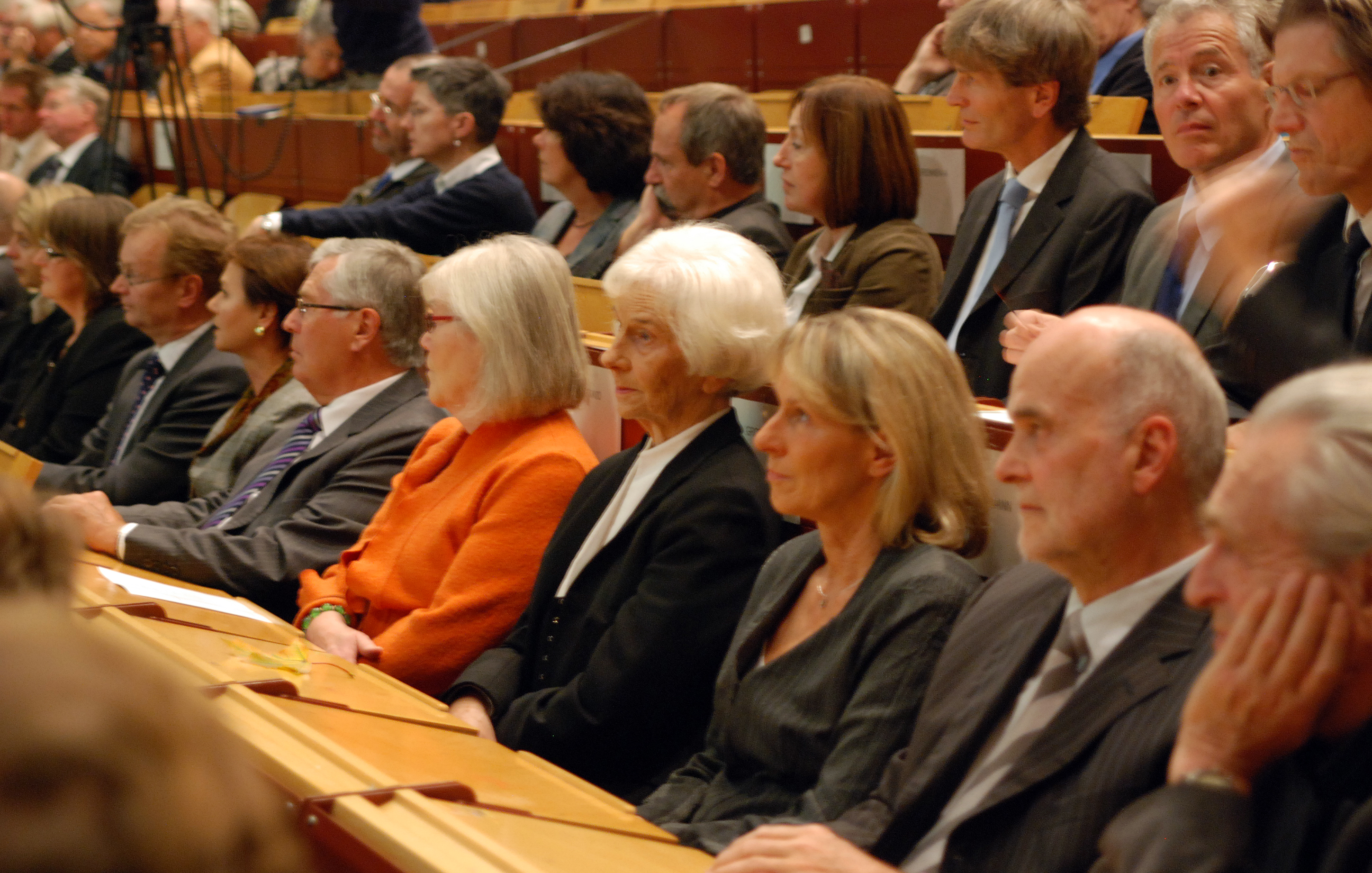 Kanzler Hans-Jürgen Simm, Festredner Klaus Kunzmann, Rektro Gerhard Sagerer, Bürgermeister Detlef Helling, Geschäftsführer WULG Helmut Steiner, Laudatorinnen Svenja Rohde und Ina Desirée Och, Christian Balz (Deutsche Bank) sowie Preisträgerin Britta Hoffarth