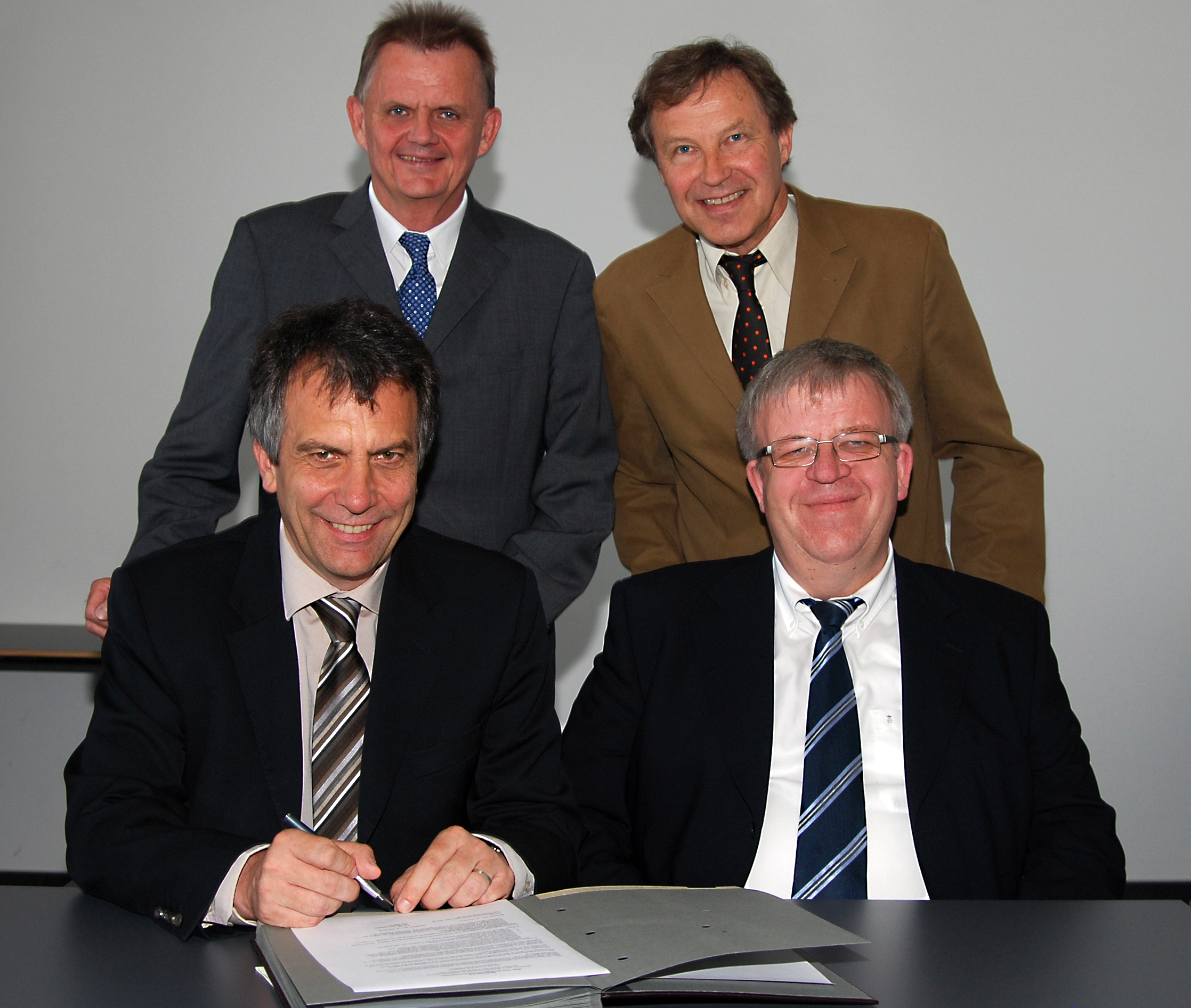 Bild: Rektor Professor Dr.-Ing Gerhard Sagerer und Pastor Ulrich Pohl (vorn v.l.) unterzeichneten die Vereinbarung zur strategischen ZusammenarbeitBildnummer: 68855