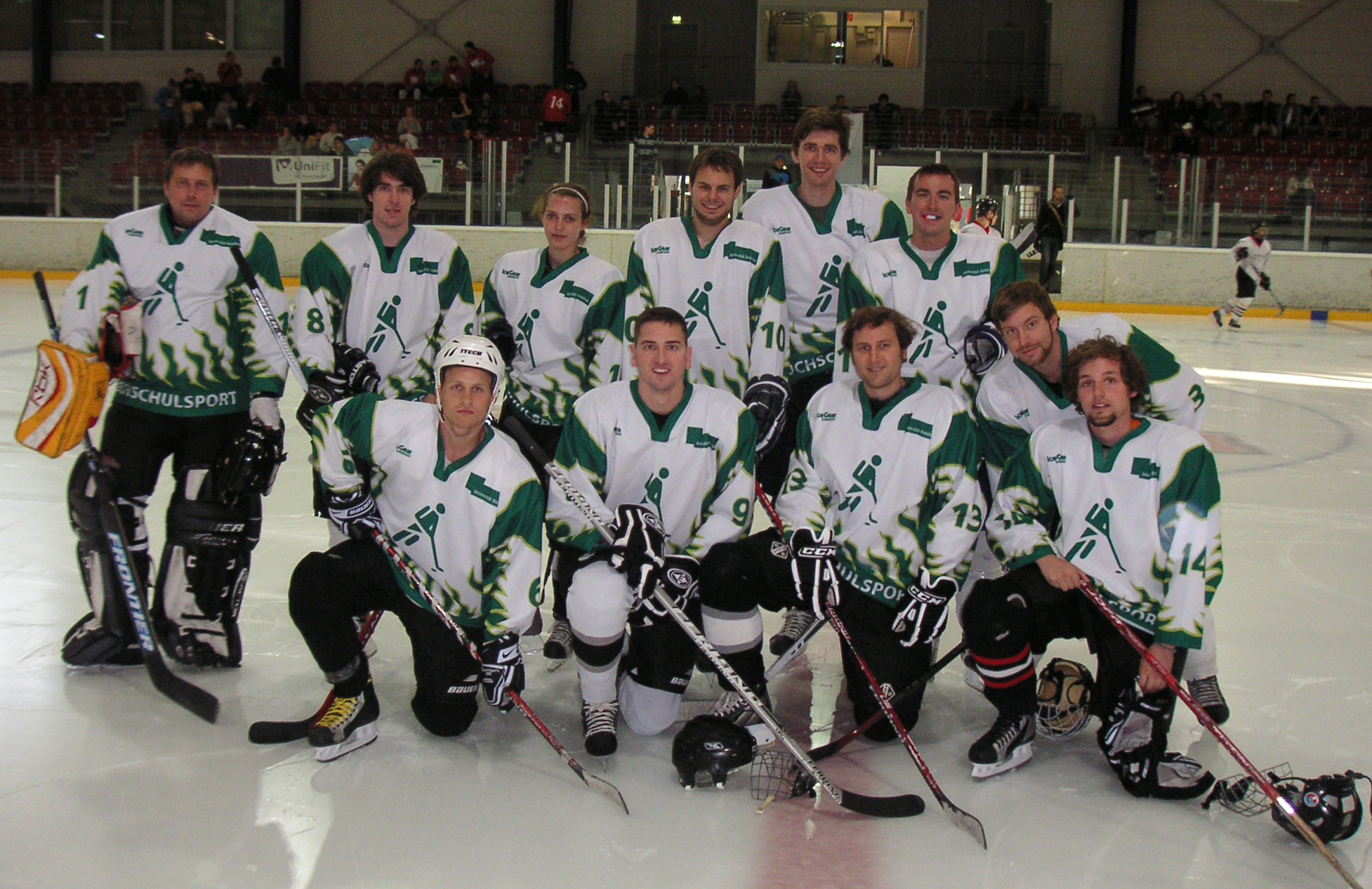 Das Bielefelder Team Patrick van Gemert, Dennis Gamerat, Christopher Mallach, Wögen Tadsen, Kristin Blase, Kai Müller, Steffen Boeckh, Justus Pontus, Tobias Dudenbostel und Daniel Wilhelm, unterstützt vom Ersatztorhüter aus Düsseldorf (v.l.)