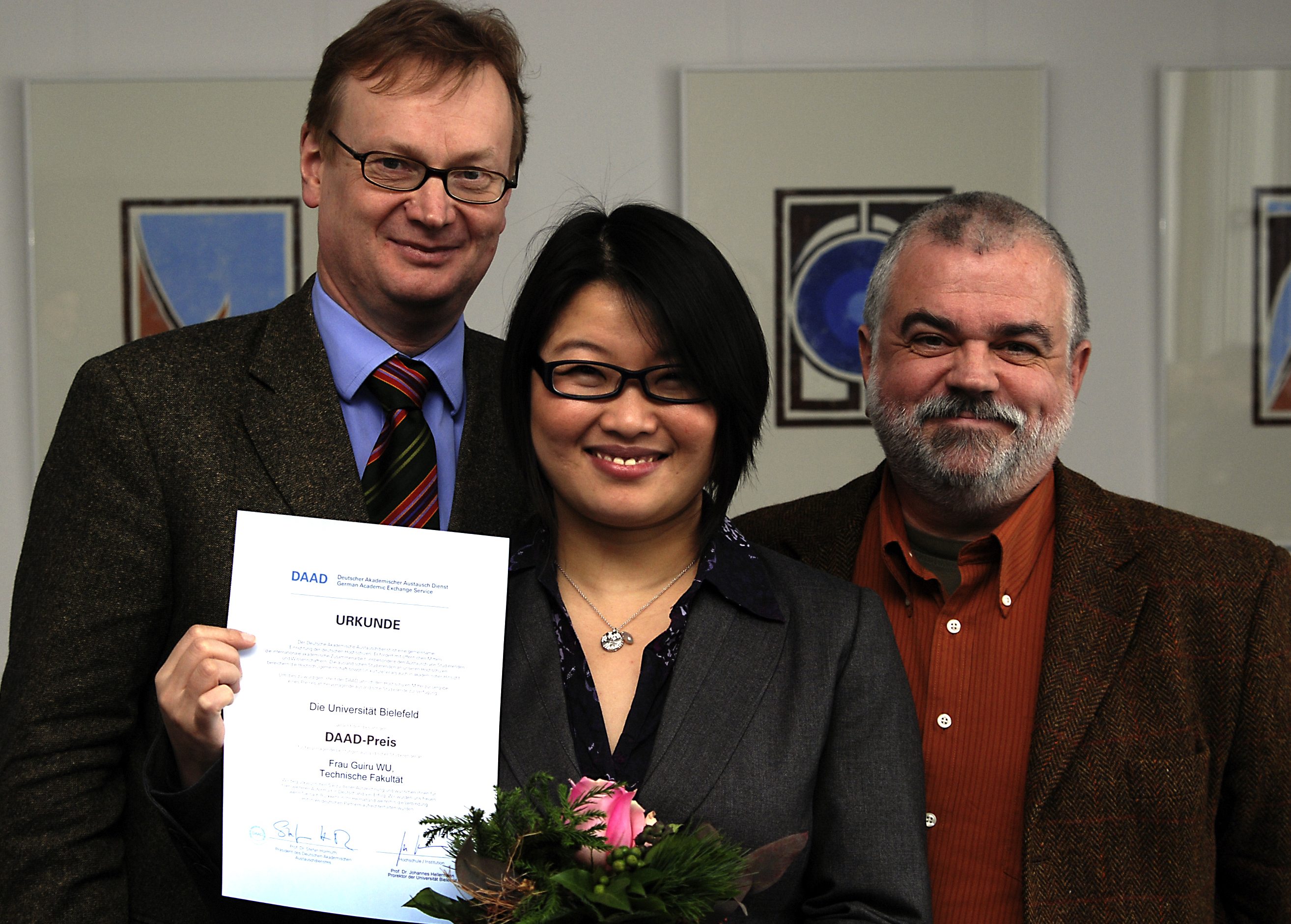 Prorektor Prof. Dr. Johannes Hellermann, Guiru Wu und Professor Dr. Karl Friehs (v.l.)