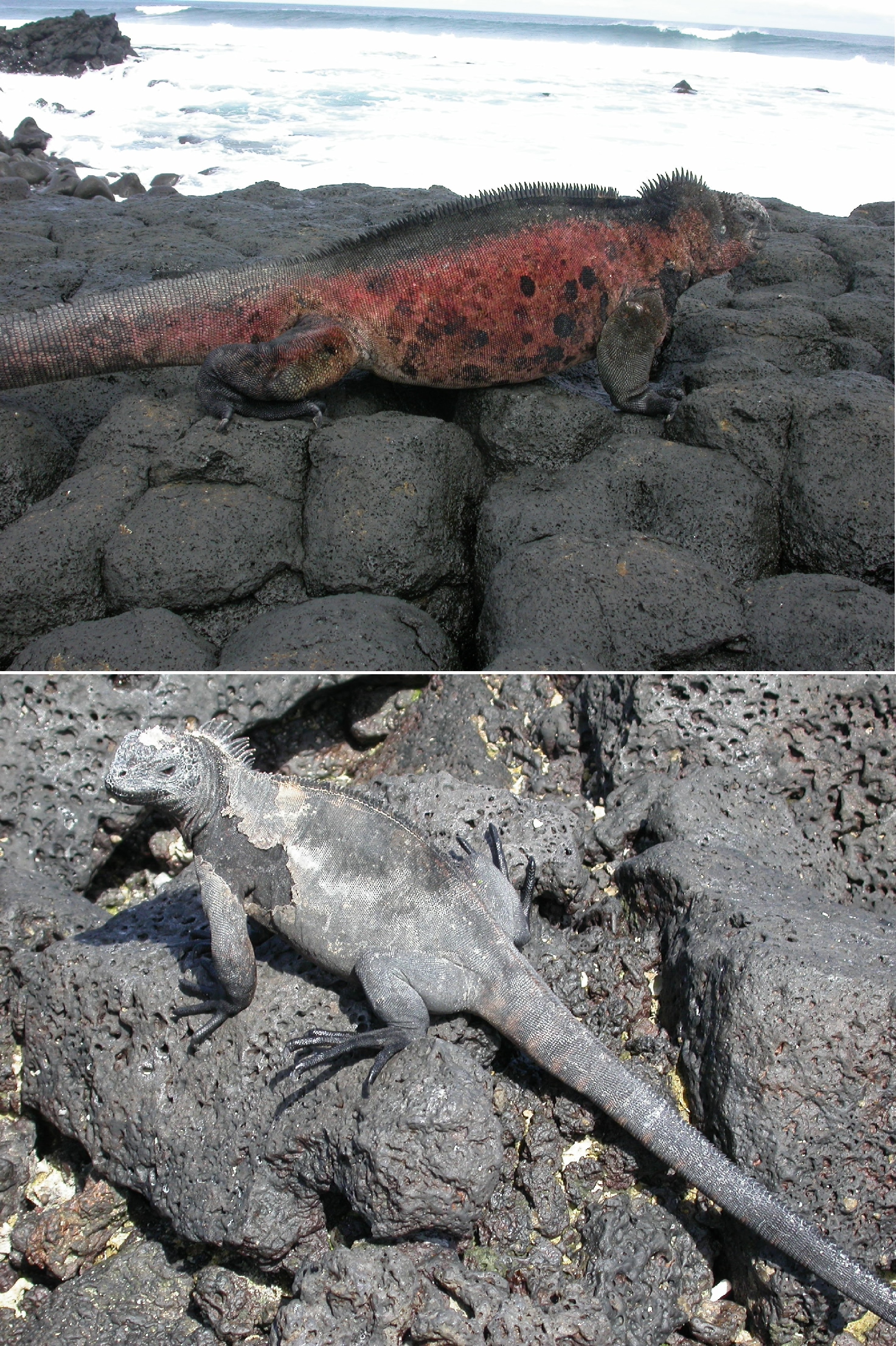 Galápagos-Meerechsen unterscheiden sich nicht nur deutlich in ihrem Aussehen (oben: Meerechse von der Insel Floreana; unten: von der Insel Santa Cruz), sondern auch in ihren Genen.