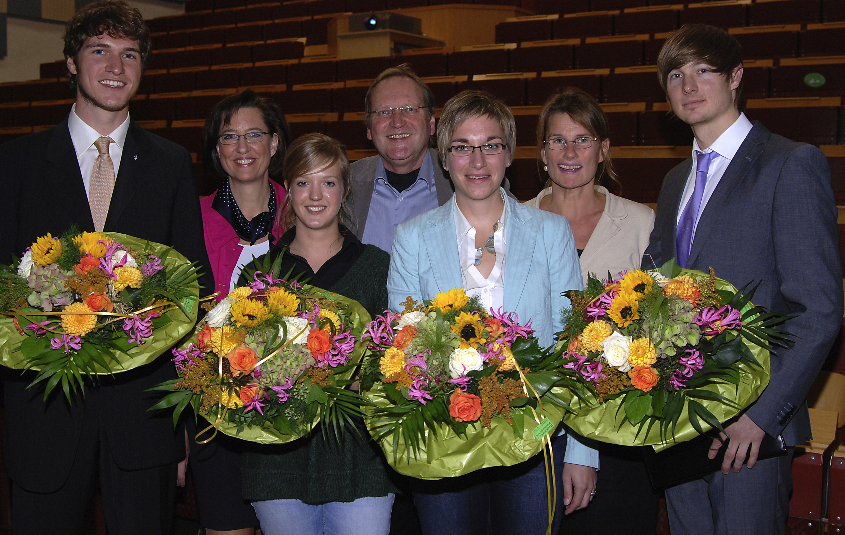 Absolventen der Fakultät für Gesundheitswissenschaften erhalten AOK-Förderpreis (v.l.): Benjamin Kuntz, Anja Schmidtpott (AOK-Westfalen-Lippe), Wiebke Sannemann, Juryvorsizender Dr. Thomas Schott, Julia Sahling, Dekanin Professorin Dr. Claudia Hornberg und Oliver Damm.