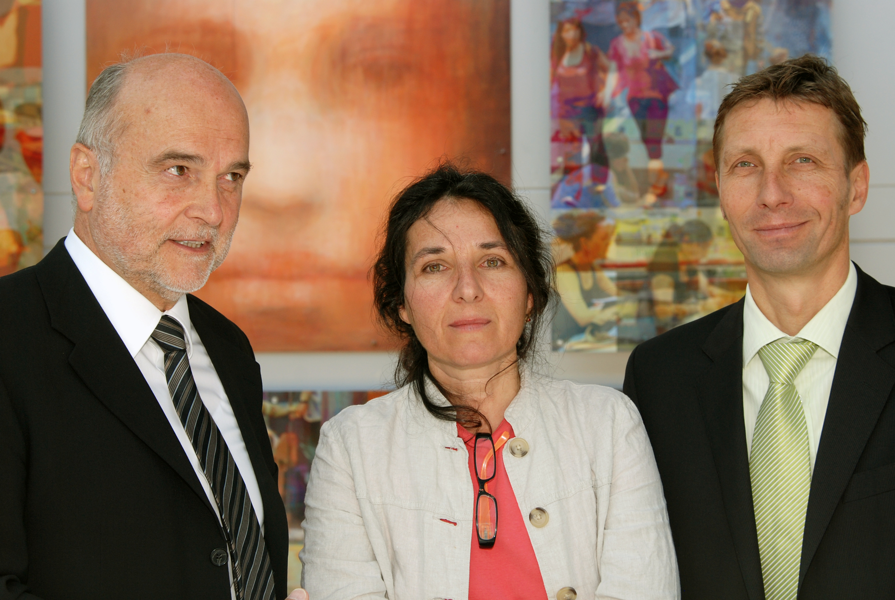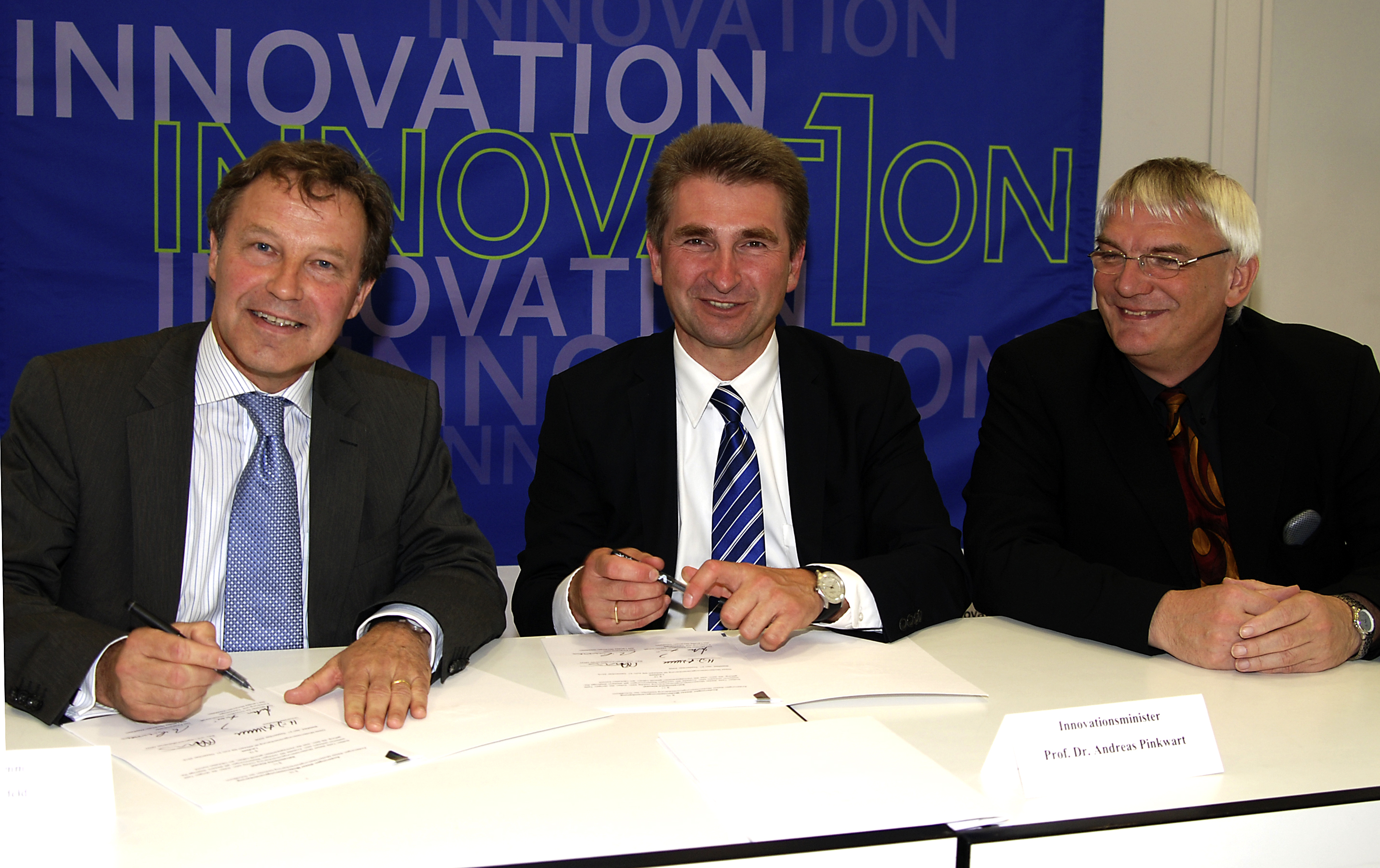 Kanzler Hans-Jürgen Simm, Minister Prof. Andreas Pinkwart und Rolf Krähmer vom BLB (v.l.)