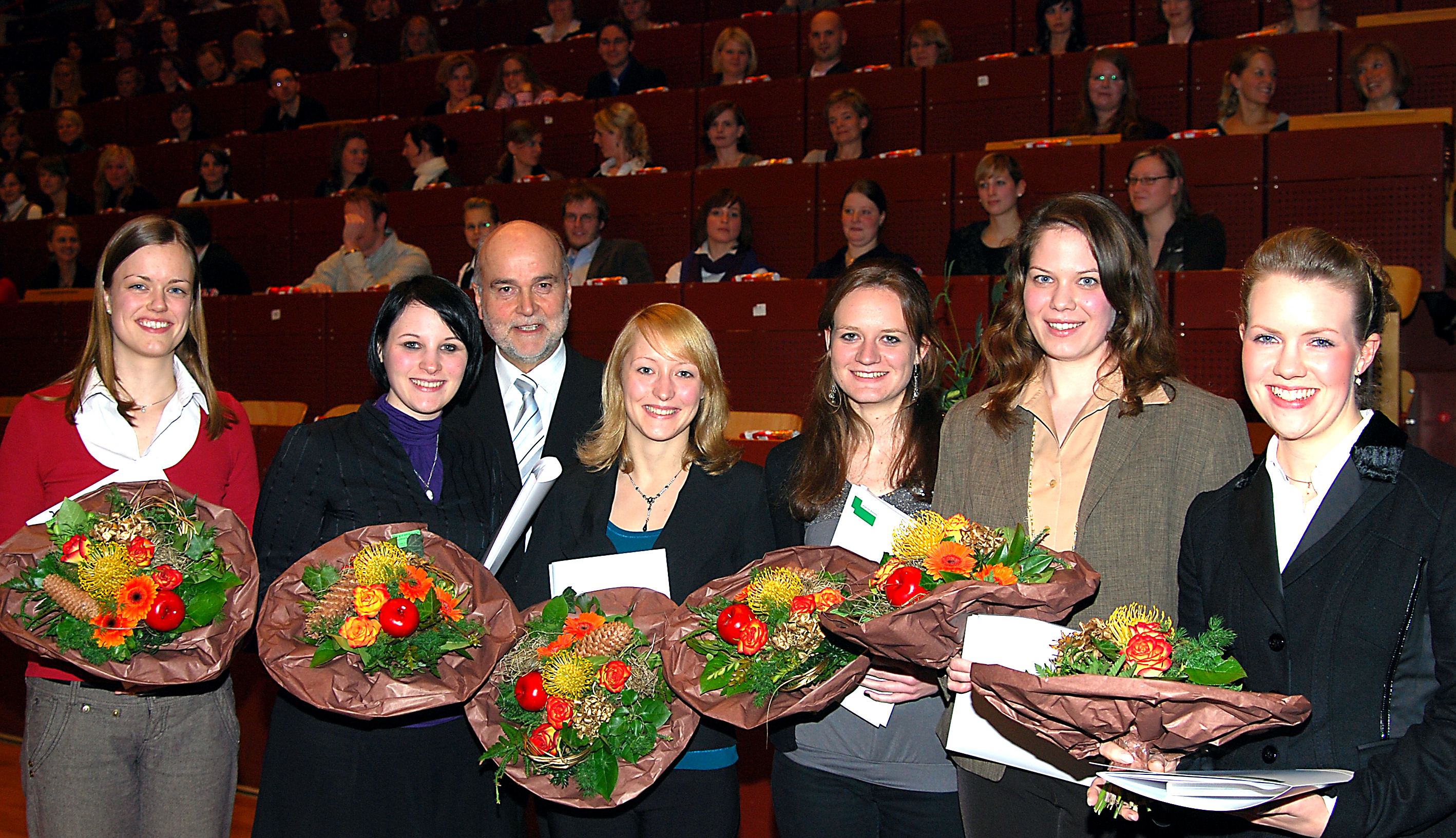 Rektor Professor Dr. Dieter Timmermann zeichnete die besten Lehramtsabsolventinnen aus (v.l.): Susanne Wulfkühler, Susanne Schnell, Claire Funk, Jana Busekros, Silvia Tebbe und Ramona Drechshage.