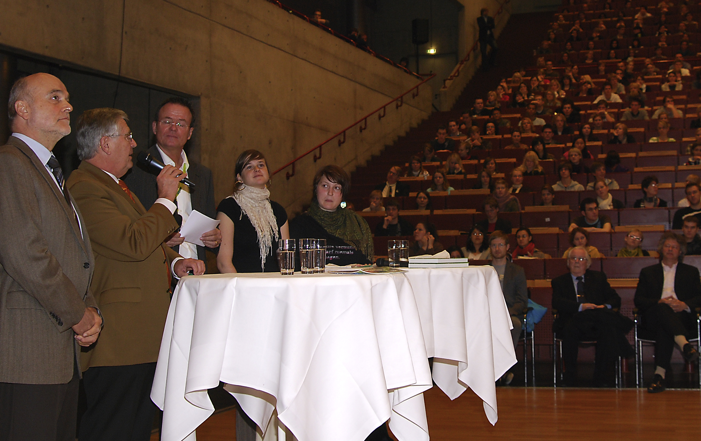 ZiF-Geschäftsführerin Dr. Britta Padberg, Rektor Prof. Dr. Dieter Timmermann und ZiF-Direktor Prof. Dr. Ipke Wachsmuth