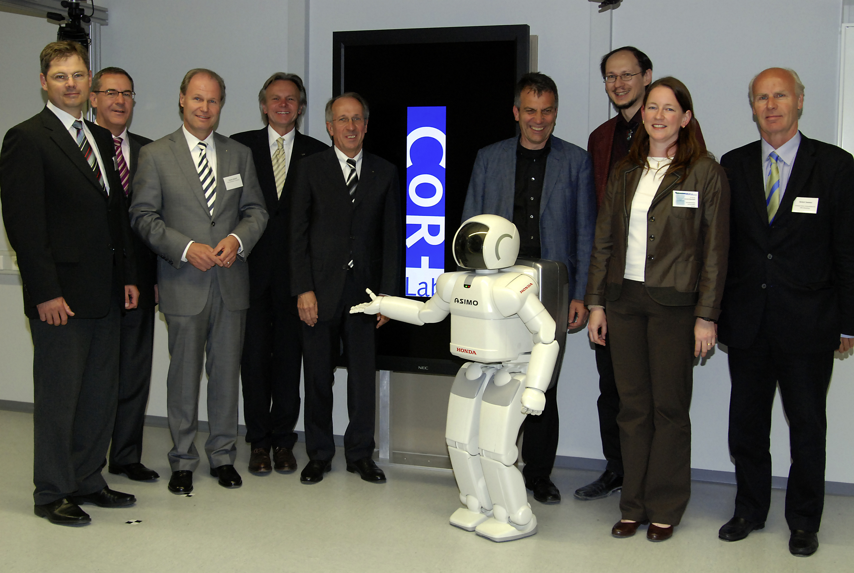 Der Vorstand des Vereins "Unternehmern für OWL-Marketing" im Cor-Lab (v.l.): Dr. Christoph von der Heiden, Günter Vogt, Thomas Niehoff, Herbert Weber, Hans-Georg Vogt, Prof. Dr. Gerhard Sagerer, Prof. Dr. Helge Ritter, Dr. Carola Haumann und Herbert Sommer.