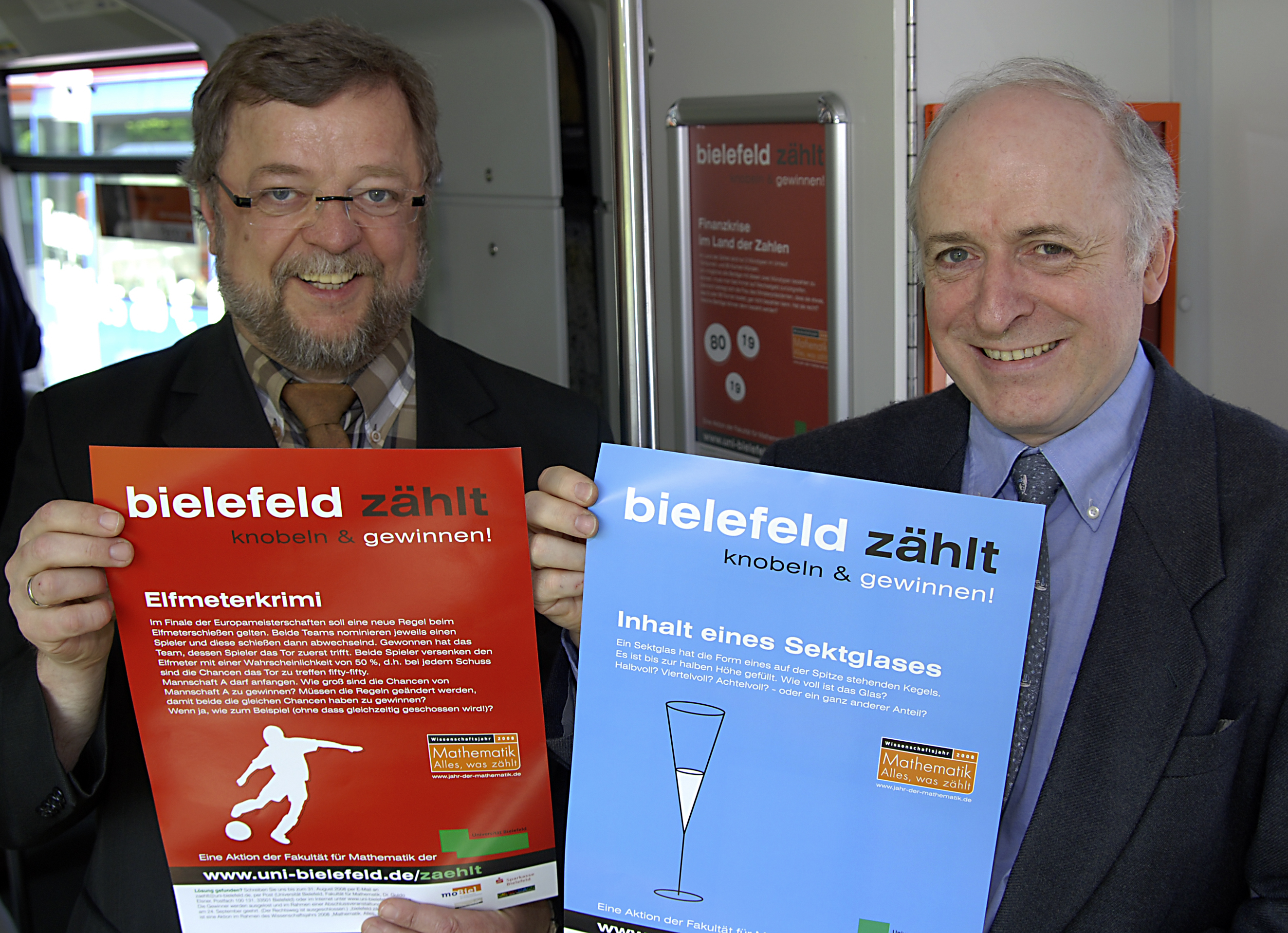 Mathematische Rätsel in der Stadtbahn: Hans-Jürgen Krain (moBiel) und Mathematikprofessor. Dr. Friedrich Götze (Initiator).