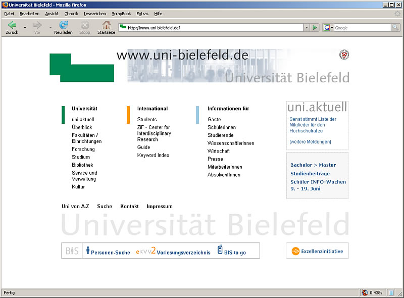 Bild: Homepage der Universität BielefeldBildnummer: 46992