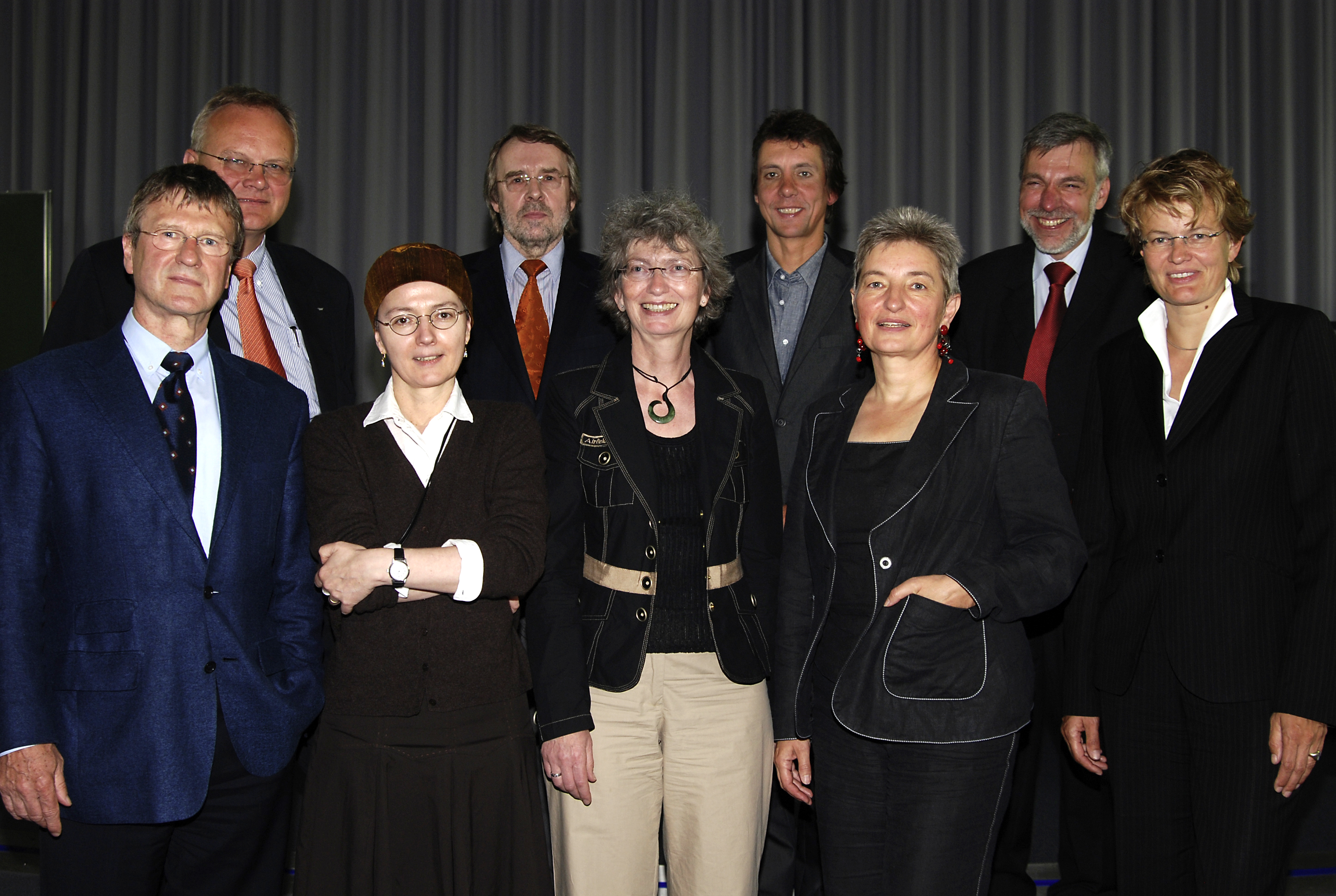 Die Mitglieder des Hochschulrats nach der feierlichen Aushändigung ihrer Ernennungs-urkunden durch einen Vertreter aus dem Ministerium. Von links: Professor Cachay, Herr Hindrichs, Professorin Davy, Professor Tenorth, Professorin Kohse-Höinghaus, Dr. Stammler, Dr. Fugmann-Heesing, Professor Carrier, Professorin Baer. Es fehlt: Professorin Schütz.