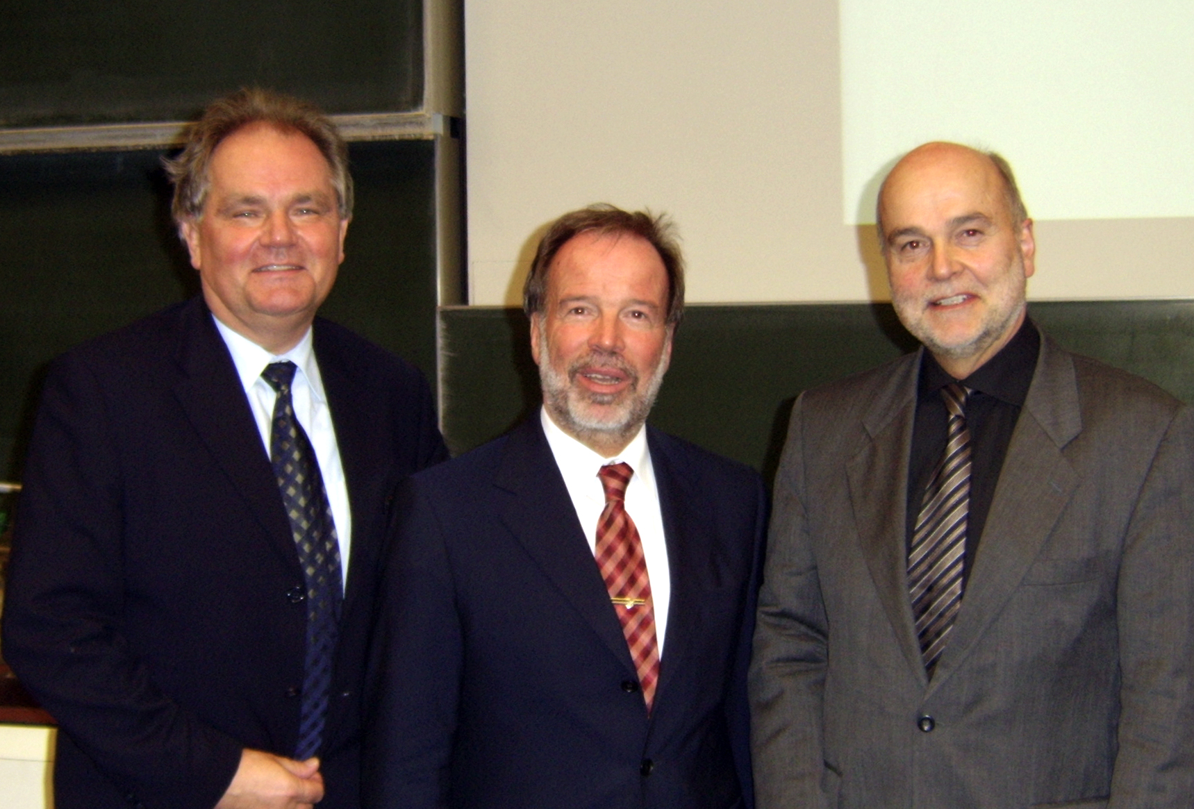 Wissenschaftsforum Wirtschaft. Das Bild zeigt (v.l.): Prof. Volker Böhm, Ph.D., Prof. Dr. Norbert Walter und Prof. Dr. Dieter Timmermann, Rektor der Universität Bielefeld.