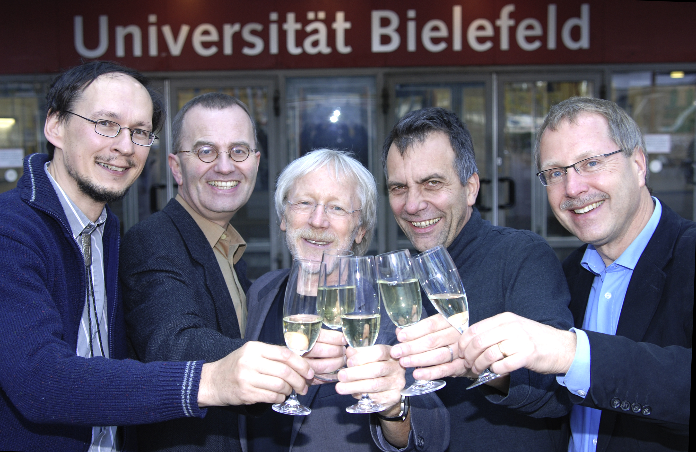 Bild: Bielefelder Erfolge bei der Exzellenzinitiative von Bund und Länder. Das Cluster 'Cognitive Interaction Technology' und die Graduiertenschule 'Bielefeld International Graduate School in History and Sociology' haben auch die entscheidende Hürde genommen.  Strahlende Gesichter bei  Professor Dr. Helge RitterBildnummer: 43600