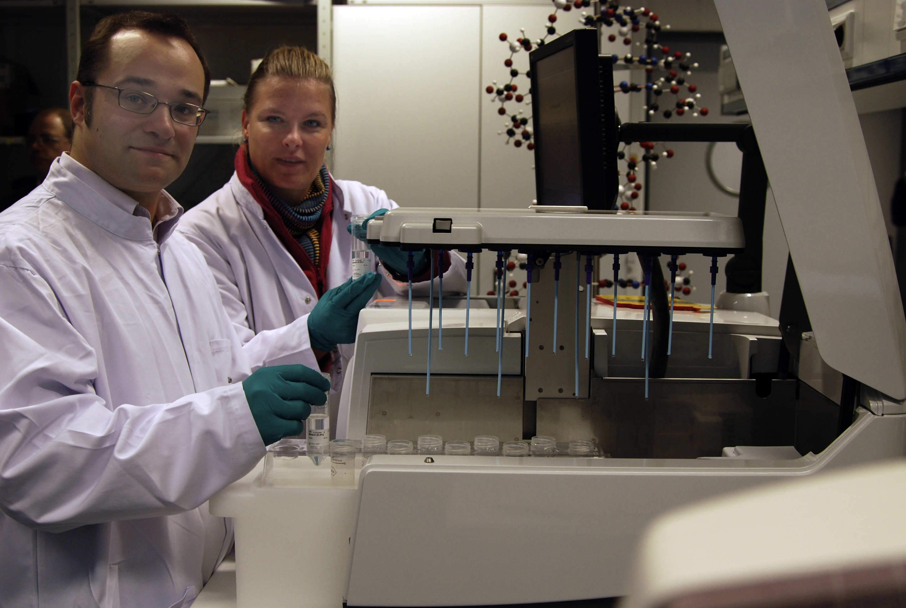 Bild: Dr. Rafael  Szczepanowski und Prisca Viehöver  arbeiten mit dem neuen Genom-Sequenziergerät..Bildnummer: 43733