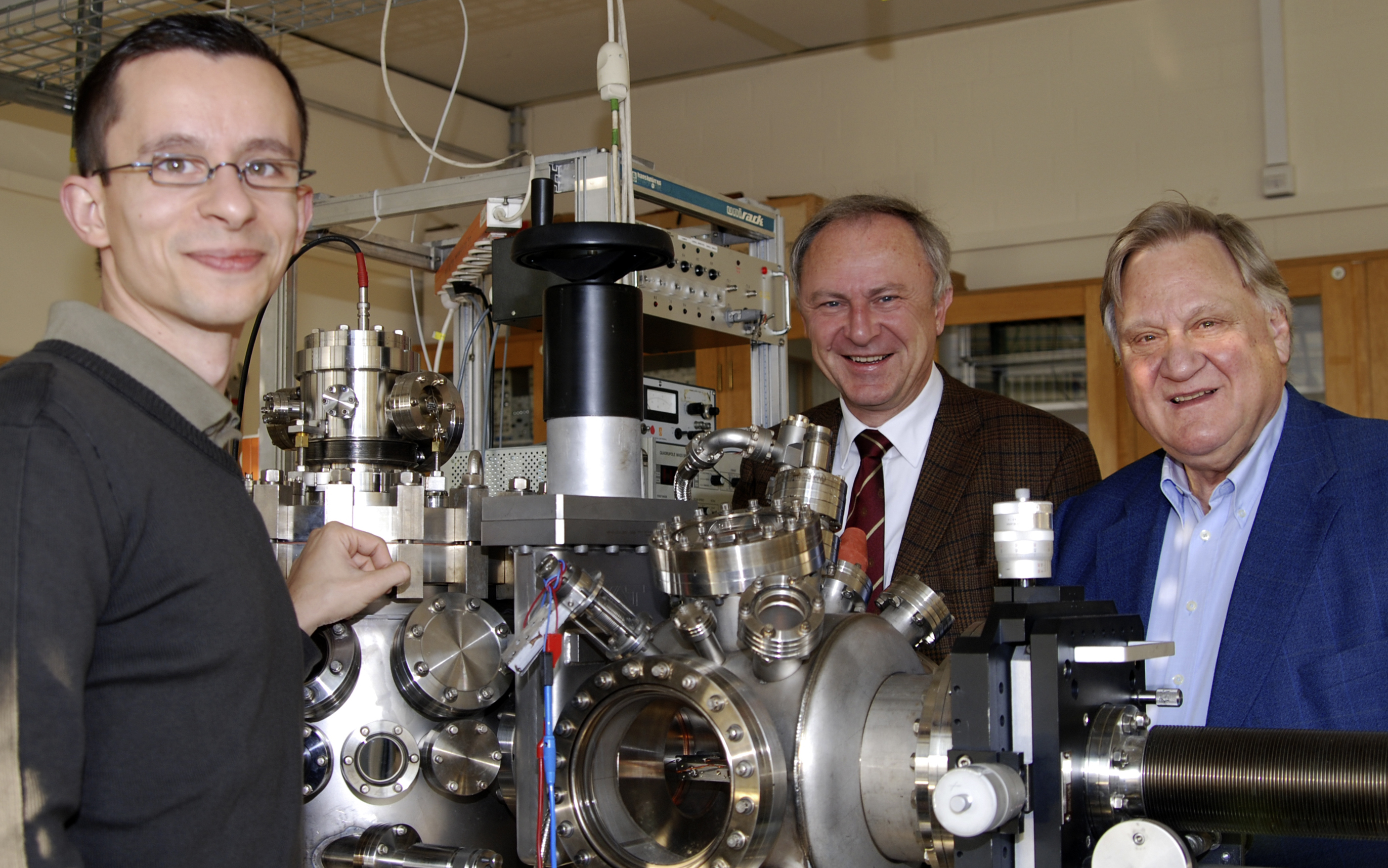 Physker veröffentlichen in "Nature": Prof. Dr. Ulrich Heinzmann (mitte) und seine erfolgreichen Co-Autoren Stefan Hendel (links) und Dr. Norbert Müller.