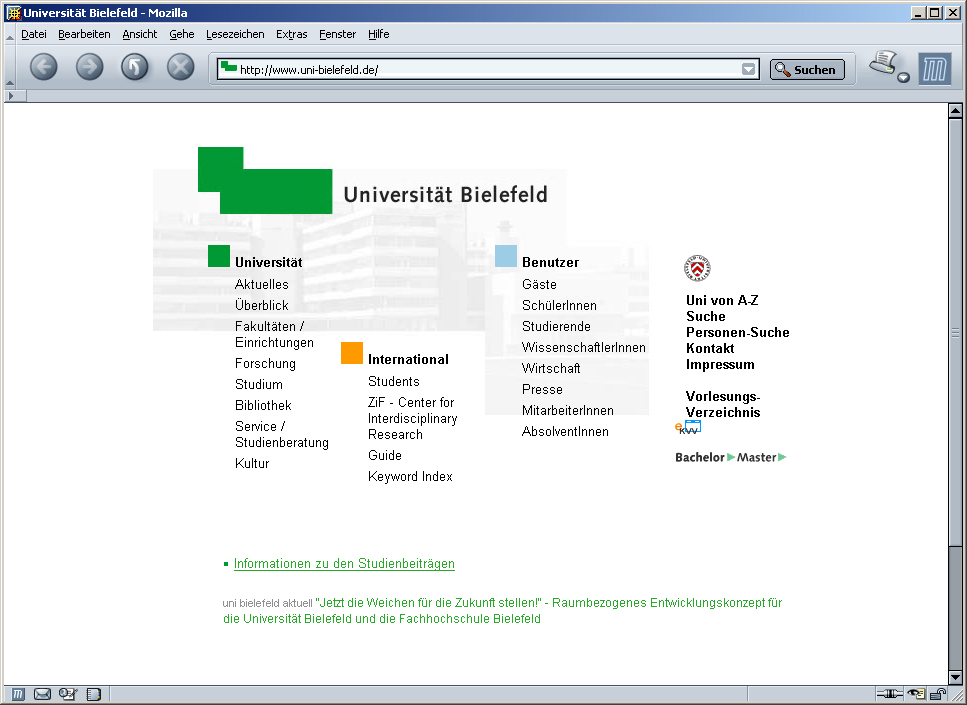 Die Homepage der Universität Bielefeld. www.uni-bielefeld.de