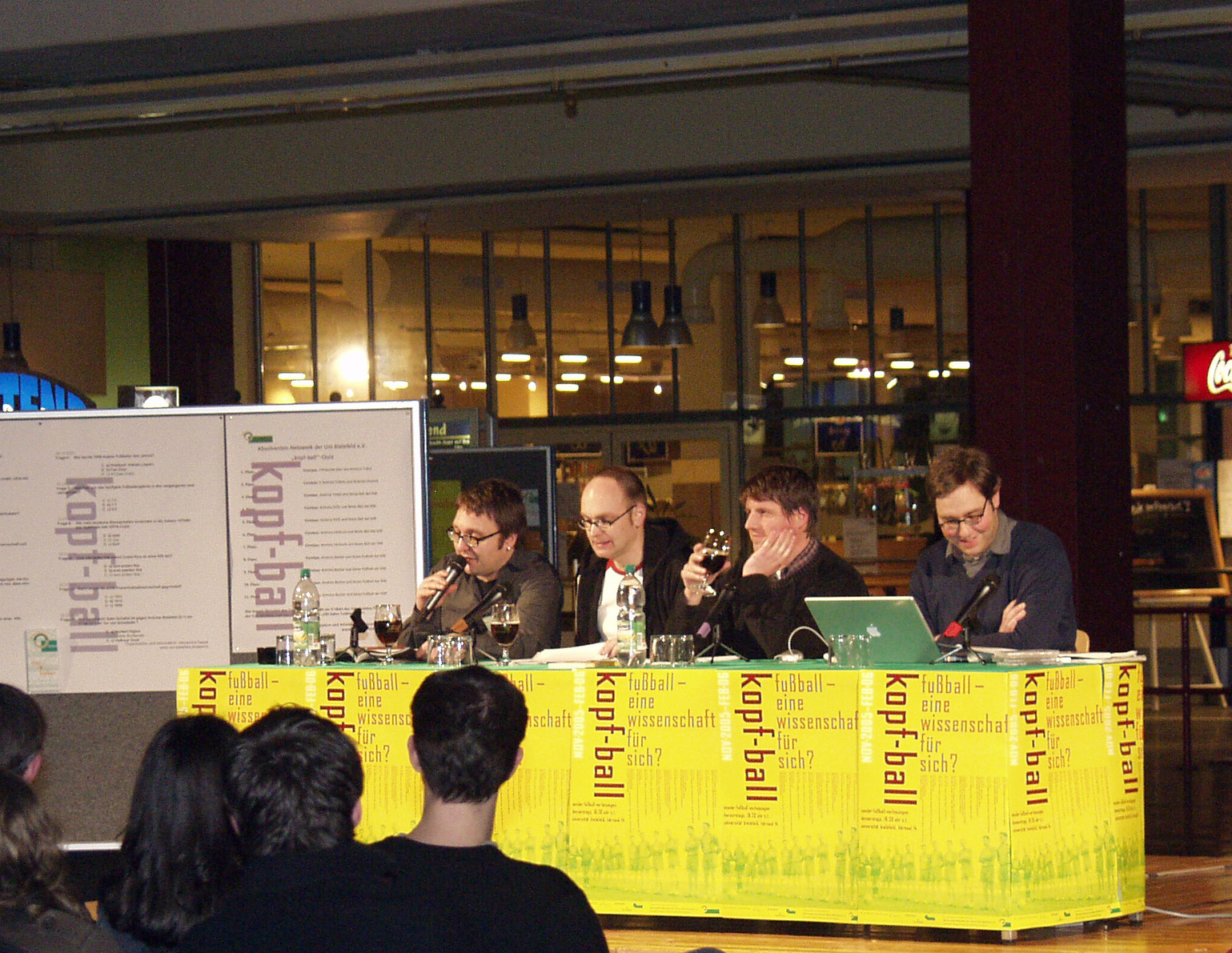 Kopf-ball: Das Endspiel mit ?11 Freunde? und ?Zirkeltraining?: Jens Kirschneck, Volker Backes, Andreas Beune und Philipp Köster (v.l.) sorgten für viel Vergnügen.