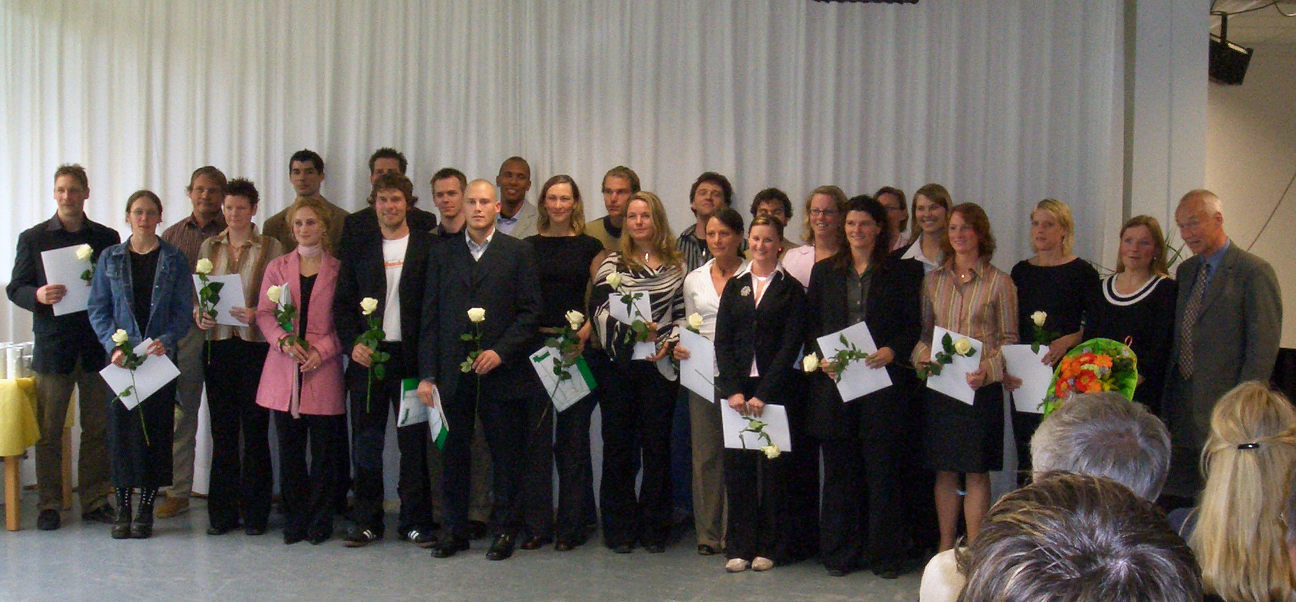 Das Foto zeigt von links: Matthias Pradel, Ines Prange, Olaf Pollmeier, Katja Schumann, Christian Peiler, Sandra Fricke, Christian Grunow, Lars Steinsiek, Tobias Overkamp, Daniel Großarth, Marc Charles, Kirsten Scholz, Tim Vollmer, Astrid Kronsbein, Ralf Stocksieker, Heidi Kell Olaf Ahlers, Susanne Hörning, Britta Meister, Catrin Klocke, Tanja Koslik, Verena Thiesbrummel, Friederike Langer und Anika Ziercke sowie Claudia E-bers, Mitarbeiterin des Prüfungsamts und Prof. Dr. Dietrich Kurz, Vorsitzender des Diplom-Prüfungsausschusses.