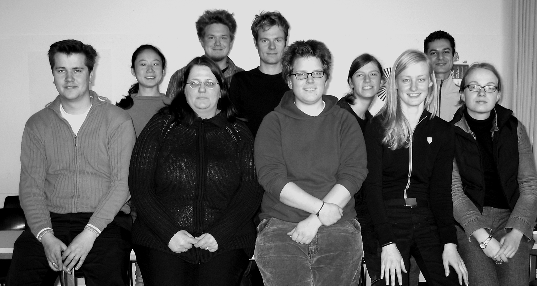 Dokumentarfilm über Mies van der Rohe-Gebäude. Das Foto zeigt die ambitionierten Jungfilmer Jens Ruland, Rui Sun, Ines Hoffmann, Sebastian Weimann, Mark Wittland, Julia Bader, Michaela Ellefredt, Christine Panhorst, Monaim Elbay und Kathrin Büsching (v.l.).