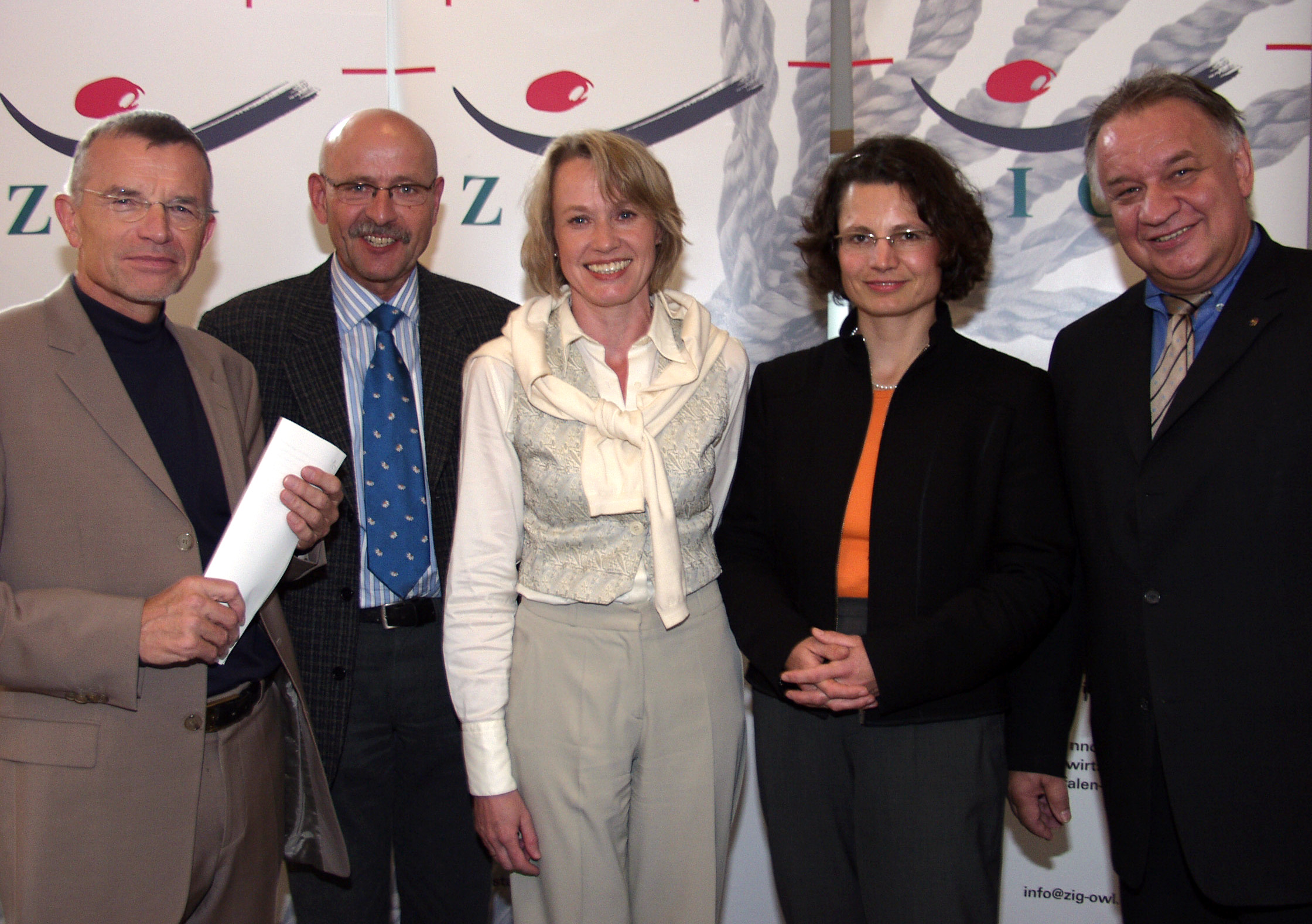 Bild: Prof. Dr. Reinhold Decker (links) übernimmt von Prof. Dr. Joachim Frohn die Leitung des Projektes Bielefeld 2000plus.    Bildnummer: 27997