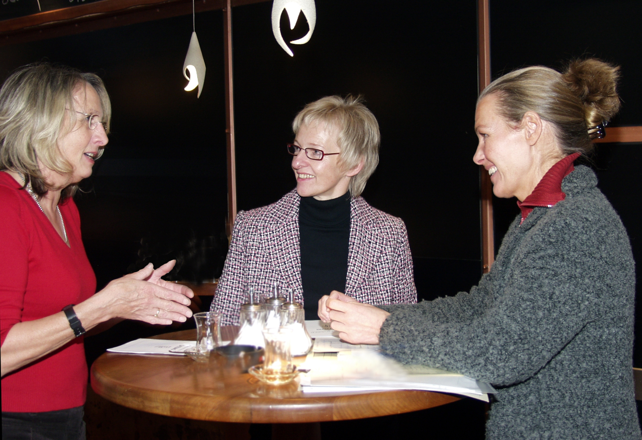Buz 218/2004 - Die Vorsitzende des Fördervereins Frauenstudien Irmi Heitfeld (rechts) im Gespräch mit den Absolventinnen Anne Vollmer (links) und Ingrid Langer, die über den Nutzen des Frauenstudiums für ihre berufliche Entwicklung berichteten.